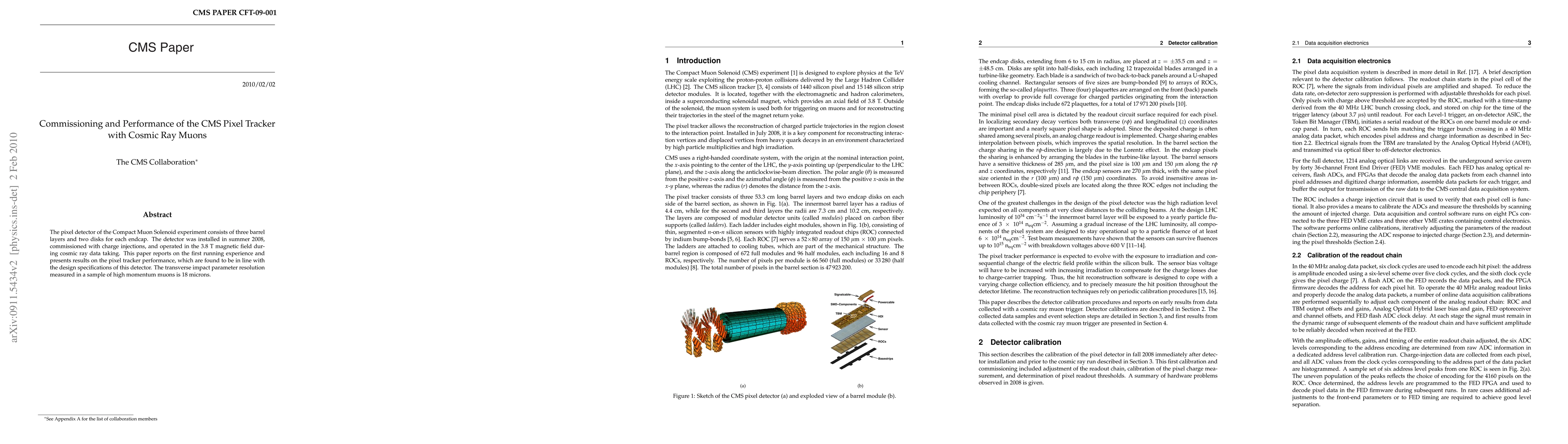 The CMS Pixel Tracker's performance was evaluated during cosmic ray muon data taking post-installation in 2008. Results met design specifications, demonstrating a transverse impact parameter resolution of 18 microns for high momentum muons, confirming the detector's effectiveness in the 3.8 T magnetic field.
