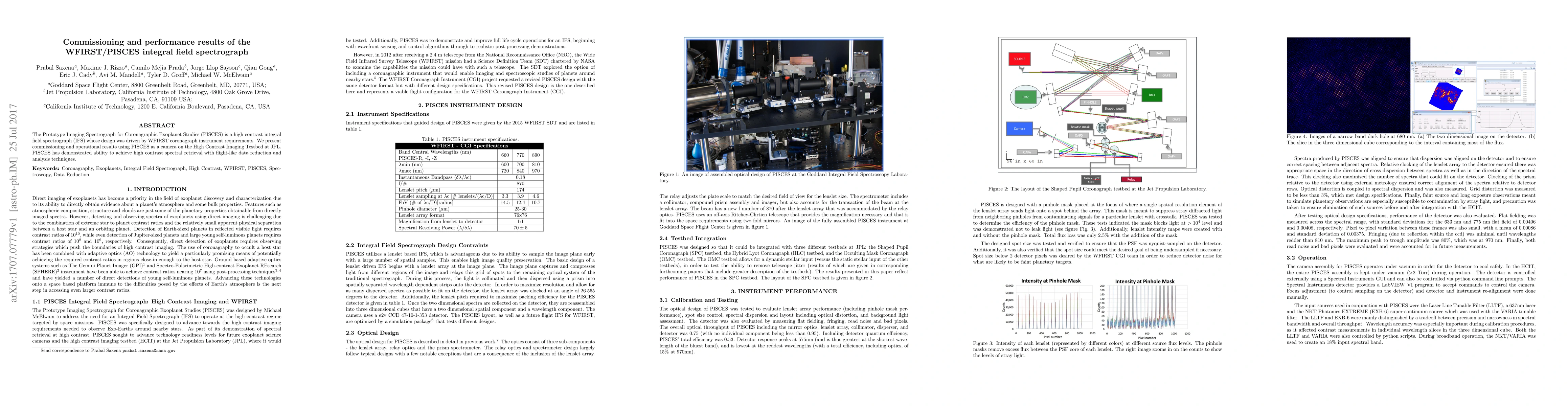 The WFIRST/PISCES integral field spectrograph has successfully commissioned and demonstrated high-contrast spectral retrieval capabilities using flight-like data reduction techniques on the High Contrast Imaging Testbed at JPL. This performance validates its design driven by WFIRST coronagraph instrument requirements.