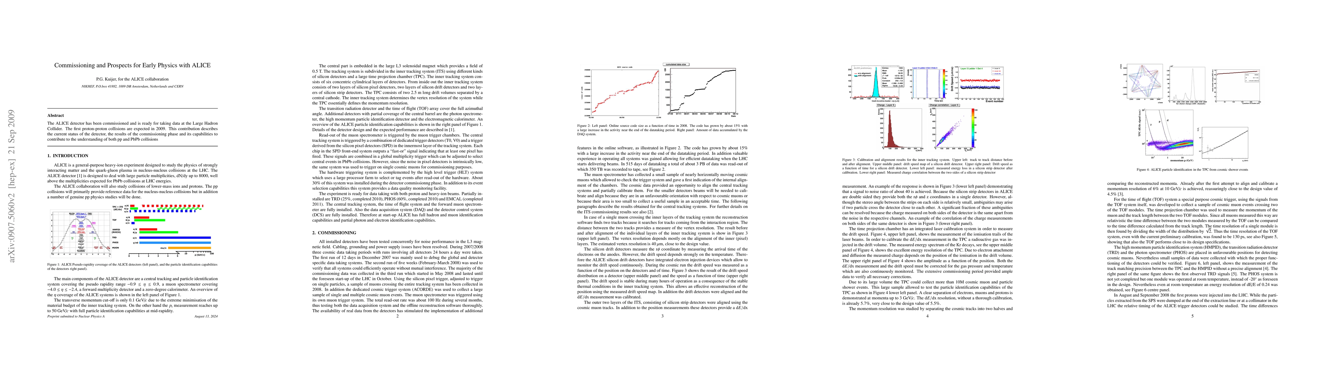 The ALICE detector has been successfully commissioned and is operational for data collection at the Large Hadron Collider, with initial proton-proton collisions anticipated in 2009, poised to significantly advance understanding of both pp and PbPb collision dynamics.