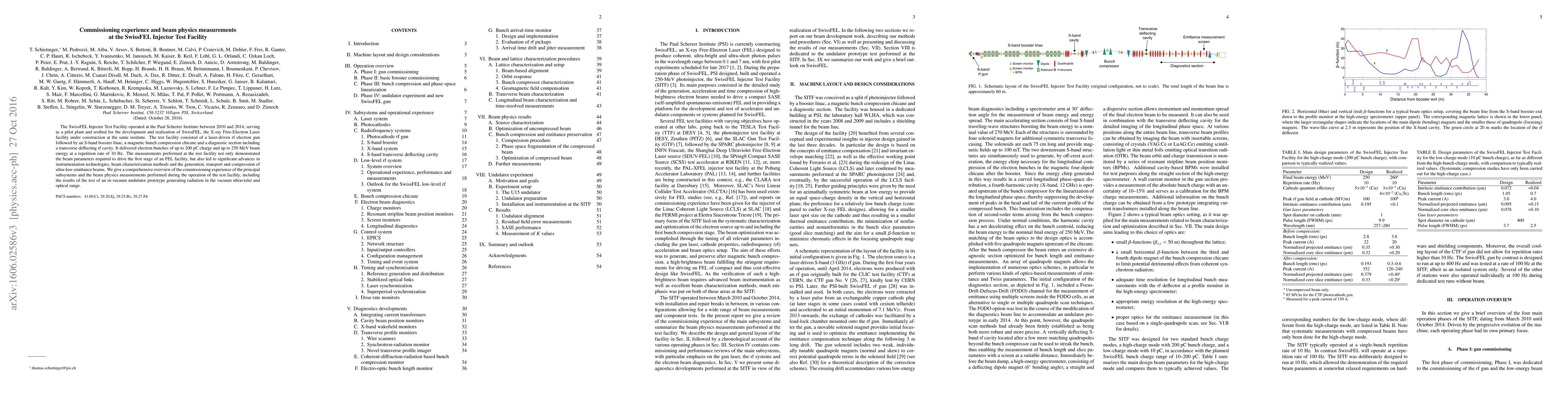 The SwissFEL Injector Test Facility at PSI operated from 2010 to 2014, providing essential testbed data for the SwissFEL X-ray Free-Electron Laser project, and significantly advancing beam physics and instrumentation technologies. Comprehensive commissioning and beam physics measurements were conducted, including the testing of an in-vacuum undulator prototype.