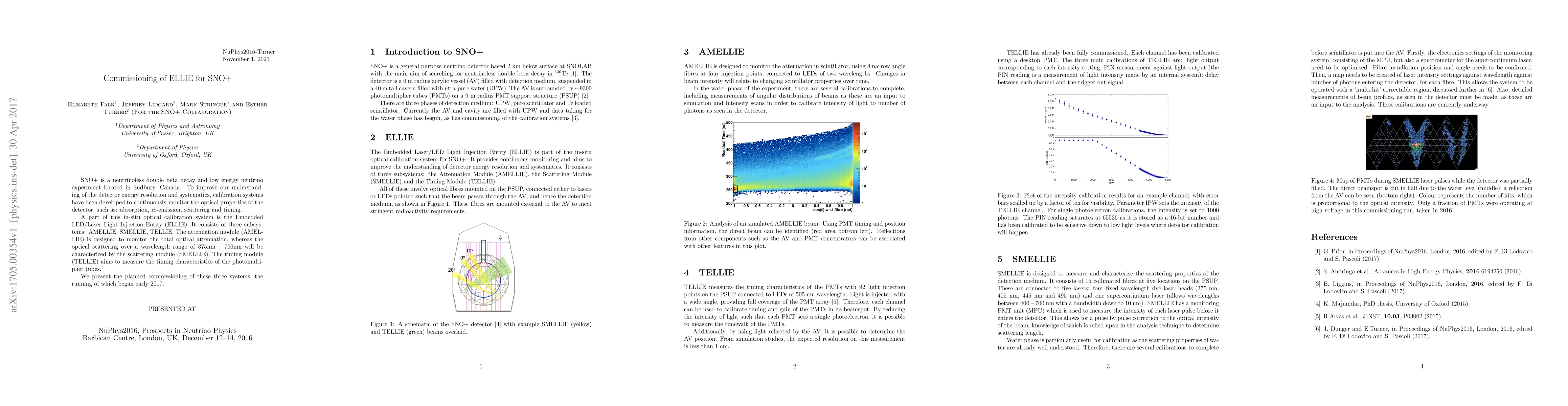 The paper details the commissioning of ELLIE, a calibration system for the SNO+ experiment, which monitors the optical properties of the detector. ELLIE consists of three subsystems to assess optical attenuation, scattering, and timing characteristics, with initial operations starting in early 2017.