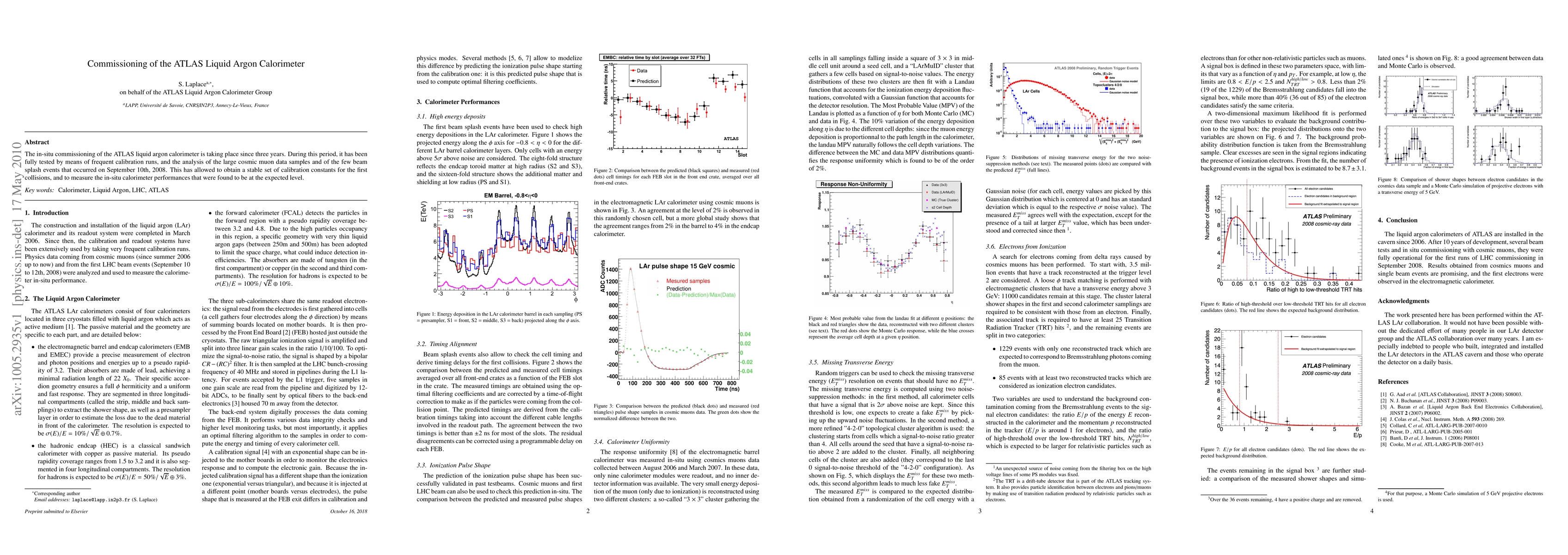 The ATLAS liquid argon calorimeter has been commissioned over three years through calibration runs and analysis of cosmic muon data, resulting in stable calibration constants and performance metrics meeting expectations.