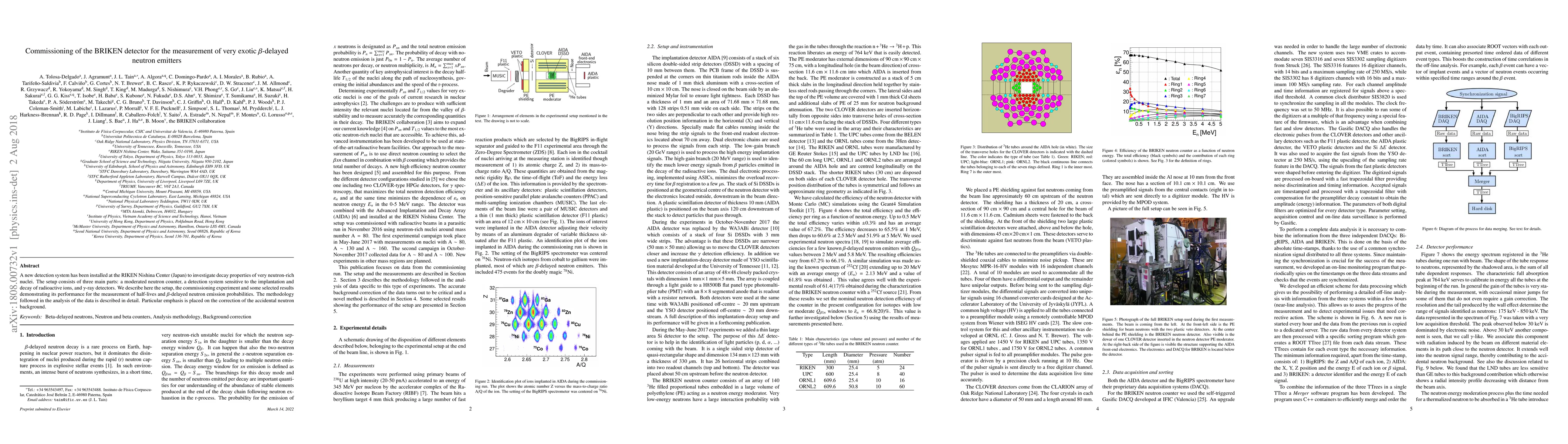 The BRIKEN detector at RIKEN's Nishina Center was commissioned to study decay properties of neutron-rich nuclei, featuring a moderated neutron counter, ion implantation detection, and gamma-ray detectors. Initial results show the system's effectiveness in measuring half-lives and beta-delayed neutron emission probabilities, with a focus on correcting accidental neutron background.