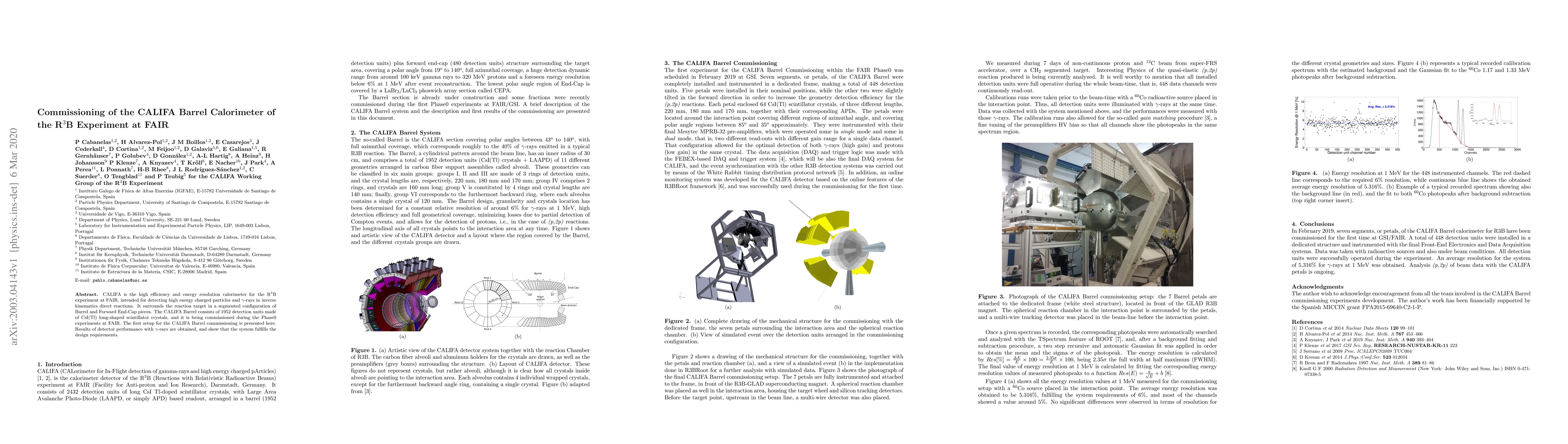 CALIFA is the high efficiency and energy resolution calorimeter for the R$^{3}$B experiment at FAIR, intended for detecting high energy charged particles and $\gamma$-rays in inverse kinematics direct reactions. It surrounds the reaction target in a segmented configuration of Barrel and Forward End-Cap pieces. The CALIFA Barrel consists of 1952 detection units made of CsI(Tl) long-shaped scintillator crystals, and it is being commissioned during the Phase0 experiments at FAIR. The first setup for the CALIFA Barrel commissioning is presented here. Results of detector performance with $\gamma$-rays are obtained, and show that the system fulfills the design requirements.