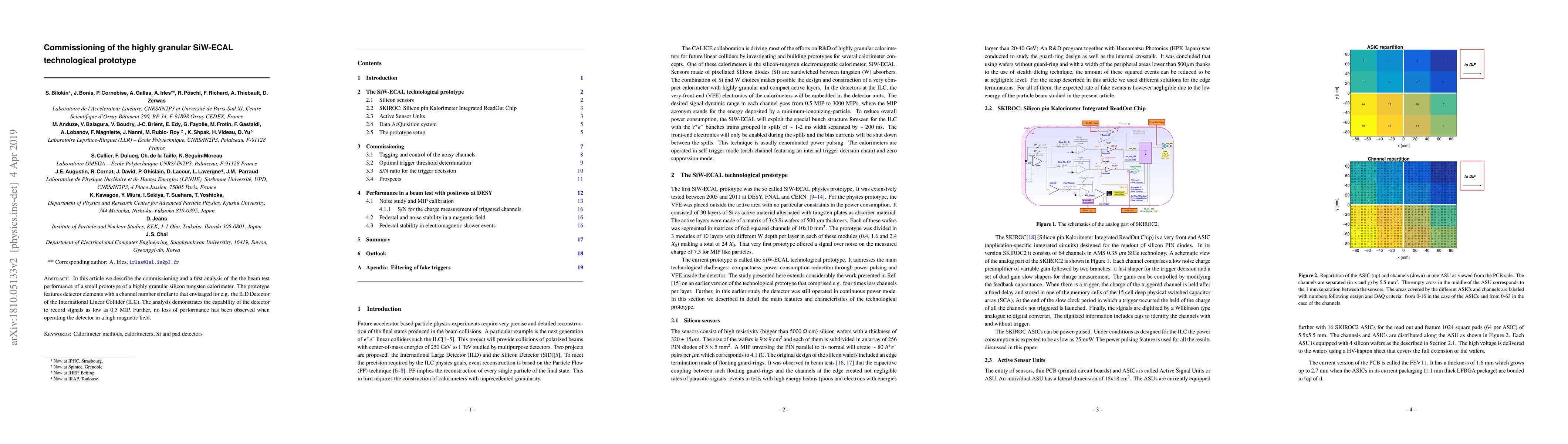 This paper details the commissioning and initial beam test results of a highly granular silicon tungsten calorimeter prototype, showcasing its ability to detect signals as low as 0.5 MIP and maintaining performance in high magnetic fields.