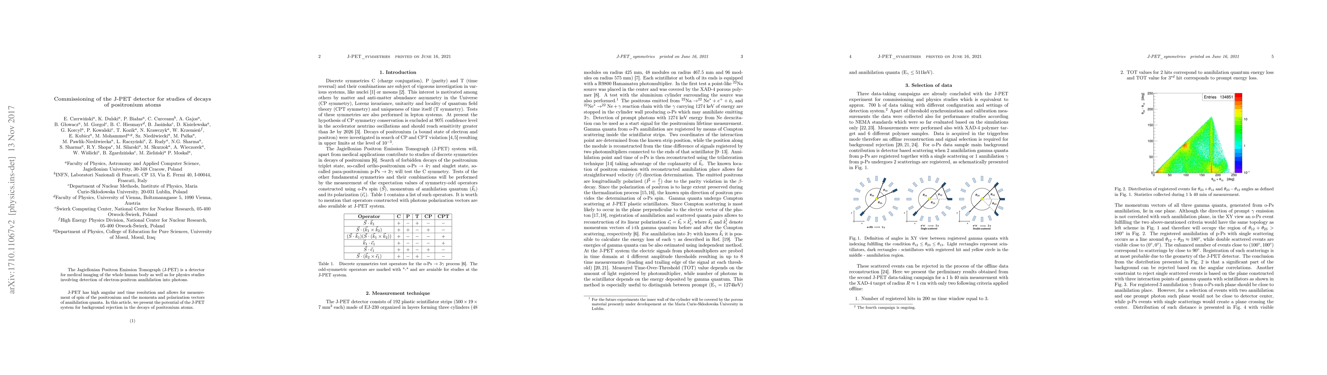 The J-PET detector is introduced for high-resolution studies in medical imaging and physics, particularly for detecting positronium decays with precise angular and time resolution. The paper highlights J-PET's capability for effective background rejection in positronium decay studies.