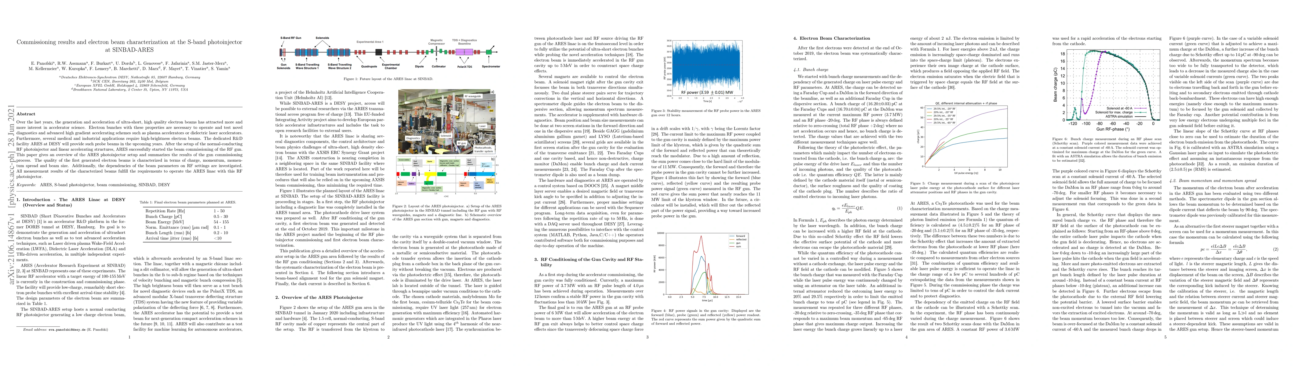 This paper details the commissioning and characterization of an S-band photoinjector at the ARES facility, focusing on the generation of high-quality ultra-short electron beams. The study reports successful commissioning and characterizes the beams in terms of charge, momentum, and size, confirming their suitability for advanced accelerator applications.