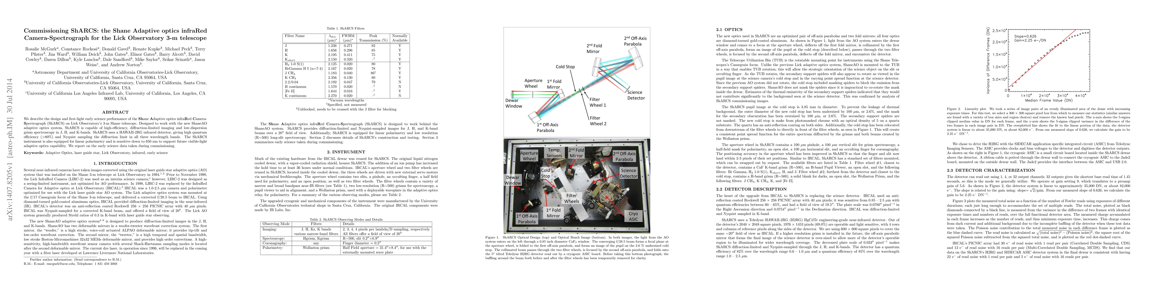 The ShARCS instrument on the Lick Observatory's 3-m Shane telescope, designed for adaptive optics, delivers high-efficiency infrared imaging and spectroscopy in J, H, and K-bands. Early science data confirm its performance, highlighting its potential for future visible-light adaptive optics.