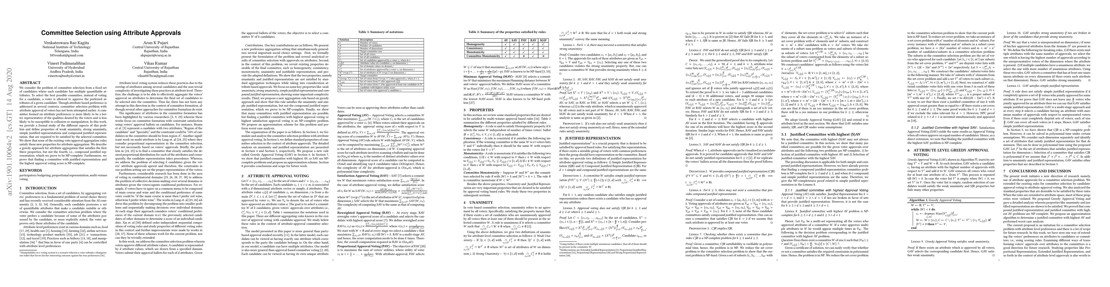 Researchers developed a new method for committee selection based on attribute approval, finding that existing aggregation rules don't meet necessary properties for fairness. A greedy approach was shown to satisfy three of four required conditions, but proving the fourth condition is NP-complete.