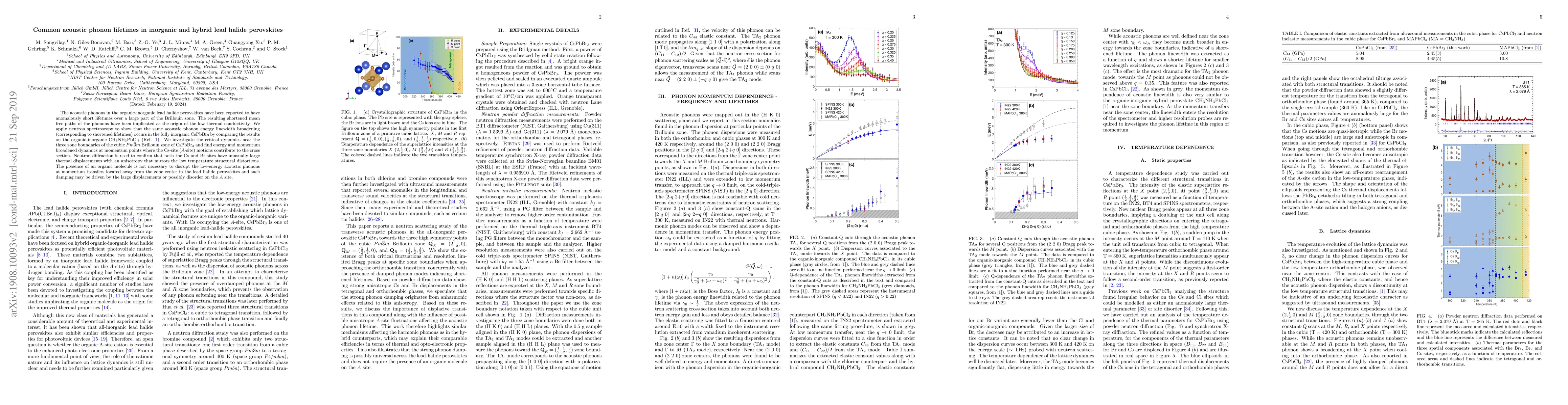 Researchers used neutron spectroscopy to study acoustic phonon lifetimes in lead halide perovskites and found that the same short lifetimes occur in both organic-inorganic and fully inorganic compounds, suggesting a possible link between large displacements and low thermal conductivity.
