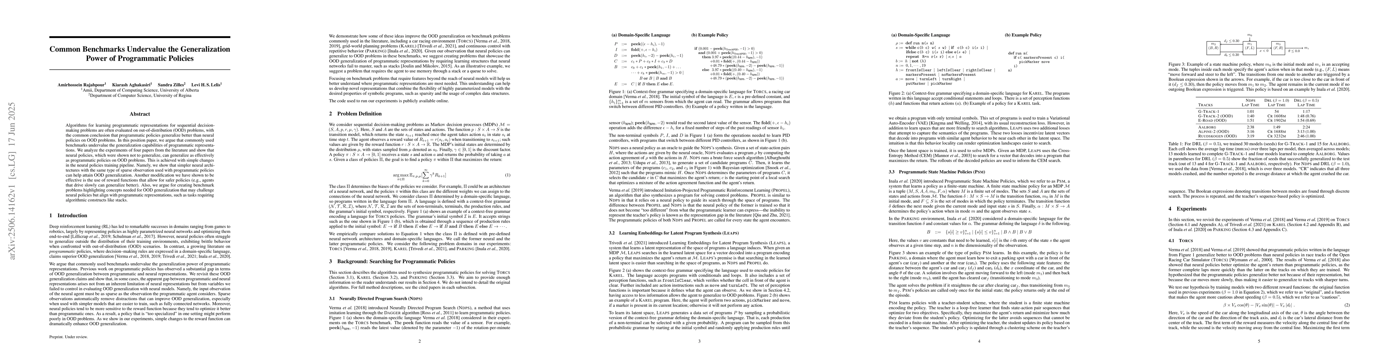 Algorithms for learning programmatic representations for sequential decision-making problems are often evaluated on out-of-distribution (OOD) problems, with the common conclusion that programmatic policies generalize better than neural policies on OOD problems. In this position paper, we argue that commonly used benchmarks undervalue the generalization capabilities of programmatic representations. We analyze the experiments of four papers from the literature and show that neural policies, which were shown not to generalize, can generalize as effectively as programmatic policies on OOD problems. This is achieved with simple changes in the neural policies training pipeline. Namely, we show that simpler neural architectures with the same type of sparse observation used with programmatic policies can help attain OOD generalization. Another modification we have shown to be effective is the use of reward functions that allow for safer policies (e.g., agents that drive slowly can generalize better). Also, we argue for creating benchmark problems highlighting concepts needed for OOD generalization that may challenge neural policies but align with programmatic representations, such as tasks requiring algorithmic constructs like stacks.