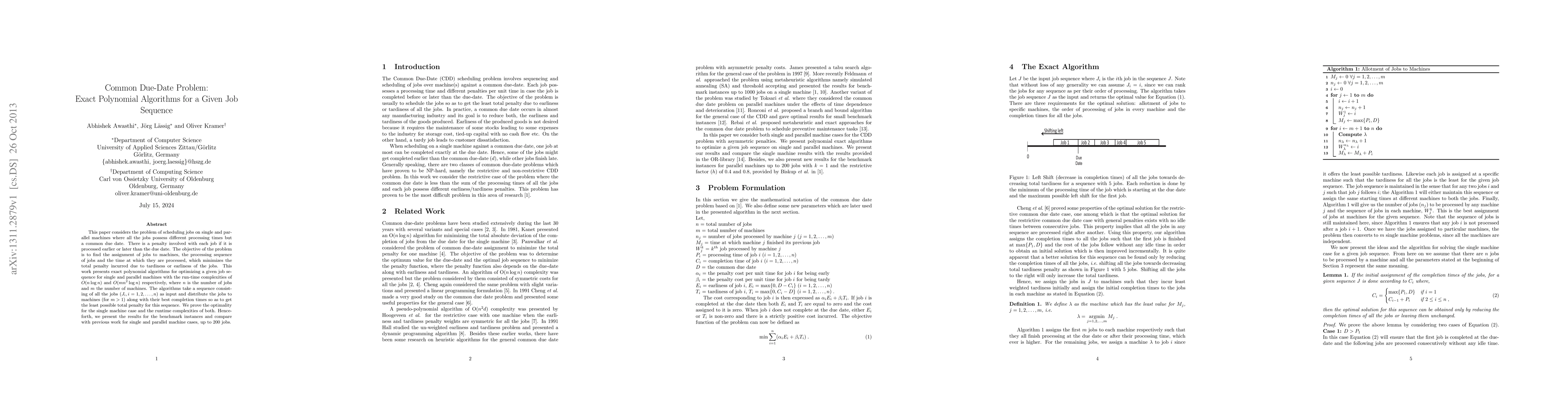 This paper considers the problem of scheduling jobs on single and parallel machines where all the jobs possess different processing times but a common due date. There is a penalty involved with each job if it is processed earlier or later than the due date. The objective of the problem is to find the assignment of jobs to machines, the processing sequence of jobs and the time at which they are processed, which minimizes the total penalty incurred due to tardiness or earliness of the jobs. This work presents exact polynomial algorithms for optimizing a given job sequence or single and parallel machines with the run-time complexities of $O(n \log n)$ and $O(mn^2 \log n)$ respectively, where $n$ is the number of jobs and $m$ the number of machines. The algorithms take a sequence consisting of all the jobs $(J_i, i=1,2,\dots,n)$ as input and distribute the jobs to machines (for $m>1$) along with their best completion times so as to get the least possible total penalty for this sequence. We prove the optimality for the single machine case and the runtime complexities of both. Henceforth, we present the results for the benchmark instances and compare with previous work for single and parallel machine cases, up to $200$ jobs.