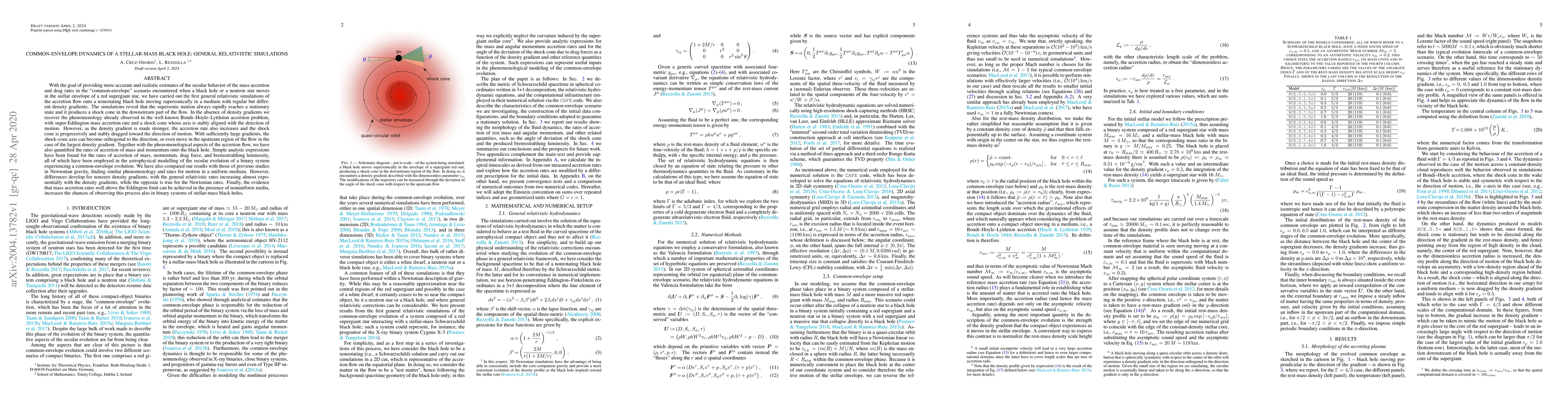 With the goal of providing more accurate and realistic estimates of the secular behavior of the mass accretion and drag rates in the "common-envelope" scenario encountered when a black hole or a neutron star moves in the stellar envelope of a red supergiant star, we have carried out the first general relativistic simulations of the accretion flow onto a nonrotating black hole moving supersonically in a medium with regular but different density gradients. The simulations reveal that the supersonic motion always rapidly reaches a stationary state and it produces a shock cone in the downstream part of the flow. In the absence of density gradients we recover the phenomenology already observed in the well-known Bondi--Hoyle--Lyttleton accretion problem, with super-Eddington mass accretion rate and a shock cone whose axis is stably aligned with the direction of motion. However, as the density gradient is made stronger, the accretion rate also increases and the shock cone is progressively and stably dragged toward the direction of motion. With sufficiently large gradients, the shock-cone axis can become orthogonal to the direction, or even move in the upstream region of the flow in the case of the largest density gradient. Together with the phenomenological aspects of the accretion flow, we have also quantified the rates of accretion of mass and momentum onto the black hole. Simple analytic expressions have been found for the rates of accretion of mass, momentum, drag force, and bremsstrahlung luminosity, all of which have been employed in the astrophysical modelling of the secular evolution of a binary system experiencing a common-envelope evolution...
