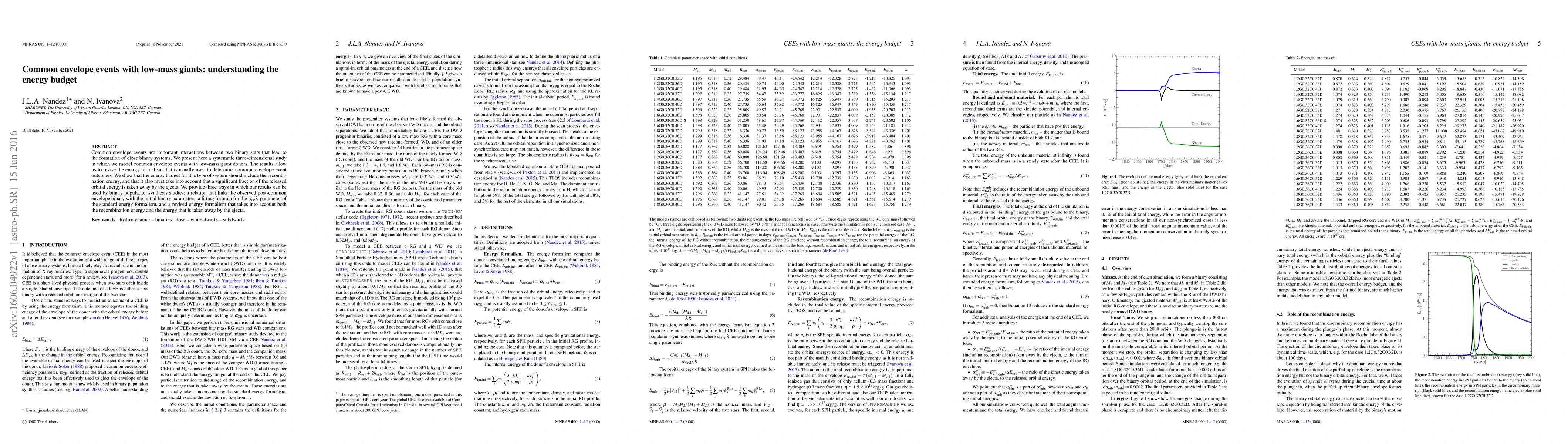 This study systematically models common envelope events involving low-mass giant donors, revealing that the energy budget must include recombination energy and the energy carried by ejecta. The findings revise the standard energy formalism and provide new relations for binary population synthesis studies.