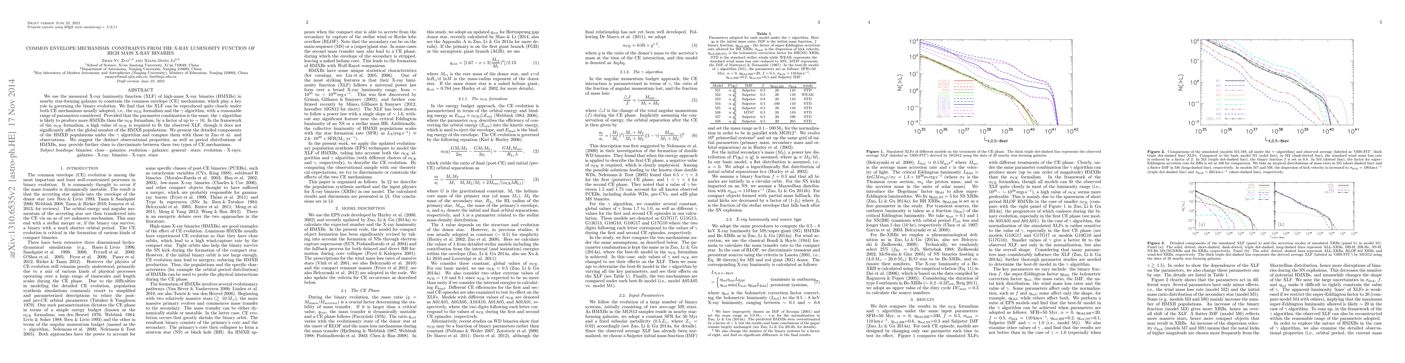 A study constrained the common envelope mechanisms in high-mass X-ray binaries using their X-ray luminosity function, finding that both models can reproduce the data closely, but with a possible 10-fold difference in predicted numbers of binaries.