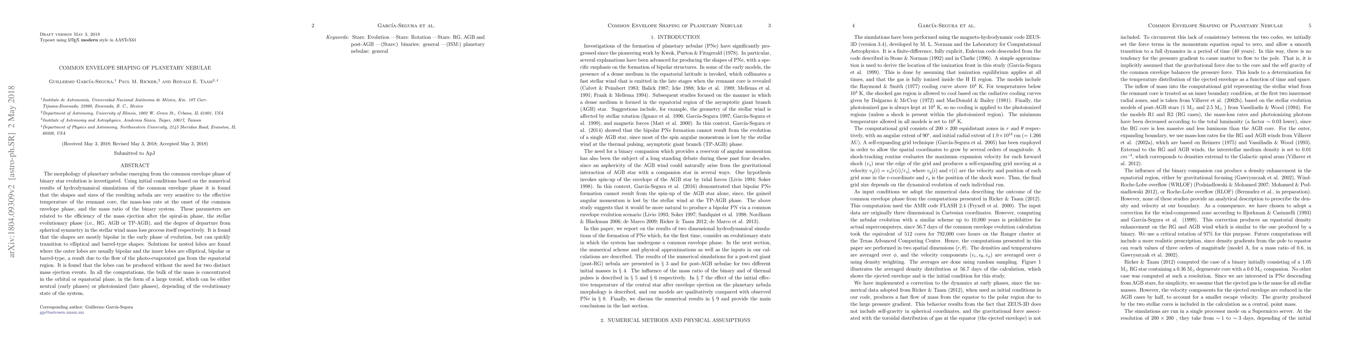 Guillermo García-Segura, Paul M. Ricker, Ronald E. Taam