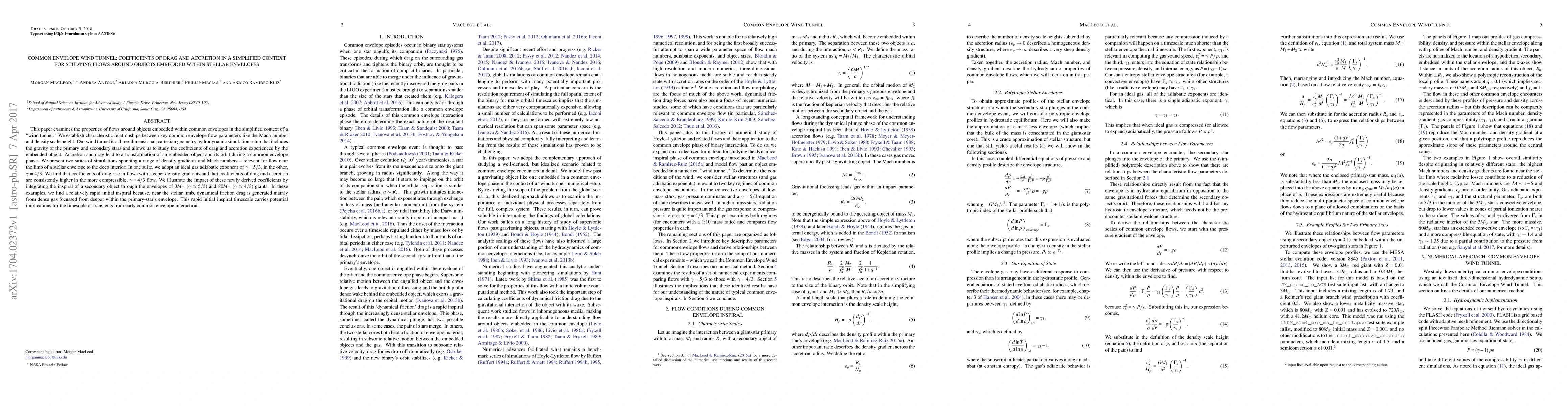 This paper examines the properties of flows around objects embedded within common envelopes in the simplified context of a "wind tunnel." We establish characteristic relationships between key common envelope flow parameters like the Mach number and density scale height. Our wind tunnel is a three-dimensional, cartesian geometry hydrodynamic simulation setup that includes the gravity of the primary and secondary stars and allows us to study the coefficients of drag and accretion experienced by the embedded object. Accretion and drag lead to a transformation of an embedded object and its orbit during a common envelope phase. We present two suites of simulations spanning a range of density gradients and Mach numbers -- relevant for flow near the limb of a stellar envelope to the deep interior. In one suite, we adopt an ideal gas adiabatic exponent of $\gamma=5/3$, in the other, $\gamma=4/3$. We find that coefficients of drag rise in flows with steeper density gradients and that coefficients of drag and accretion are consistently higher in the more compressible, $\gamma=4/3$ flow. We illustrate the impact of these newly derived coefficients by integrating the inspiral of a secondary object through the envelopes of $3M_\odot$ ($\gamma\approx5/3$) and $80M_\odot$ ($\gamma\approx4/3$) giants. In these examples, we find a relatively rapid initial inspiral because, near the stellar limb, dynamical friction drag is generated mainly from dense gas focussed from deeper within the primary-star's envelope. This rapid initial inspiral timescale carries potential implications for the timescale of transients from early common envelope interaction.