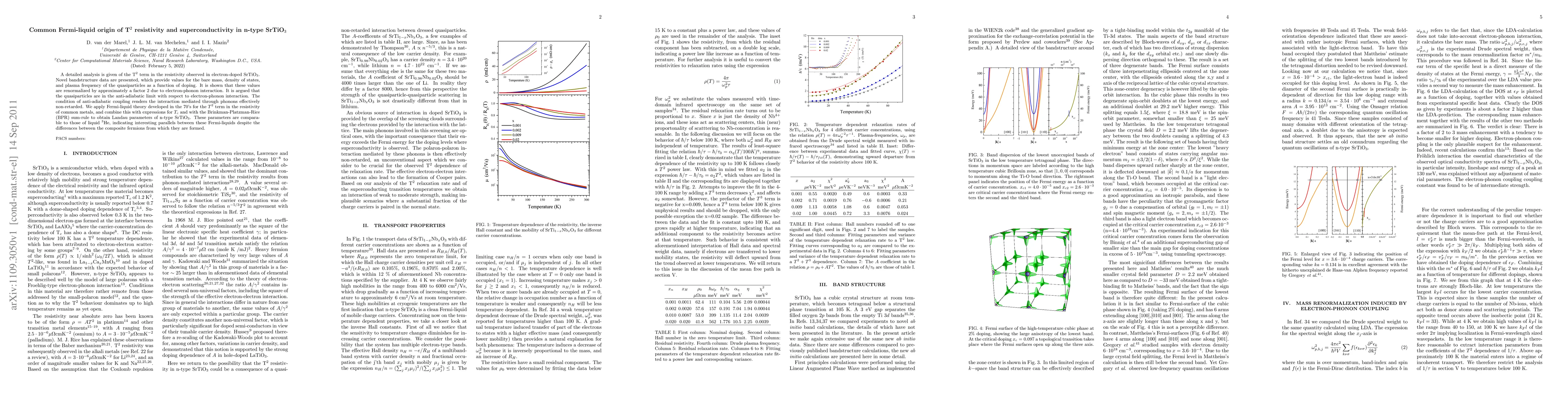 This paper analyzes the T^2 term in the resistivity of electron-doped SrTiO3, revealing that quasiparticles' properties are renormalized by electron-phonon interactions. The study applies Fermi-liquid theory to show that the quasiparticles exhibit anti-adiabatic coupling, leading to non-retarded phonon-mediated interactions and parallels to liquid 3He Fermi-liquids.