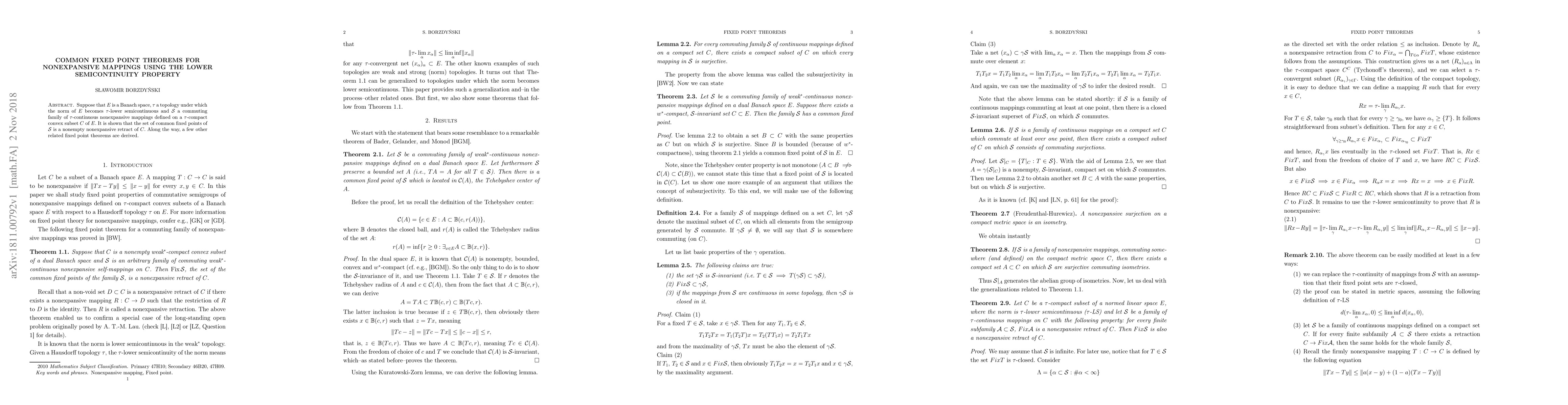 Suppose that E is a Banach space, {\tau} a topology under which the norm of E becomes {\tau}-lower semicontinuous and S a commuting family of {\tau}-continuous nonexpansive mappings defined on a {\tau}-compact convex subset C of E: It is shown that the set of common fixed points of S is a nonempty nonexpansive retract of C. Along the way, a few other related fixed point theorems are derived.