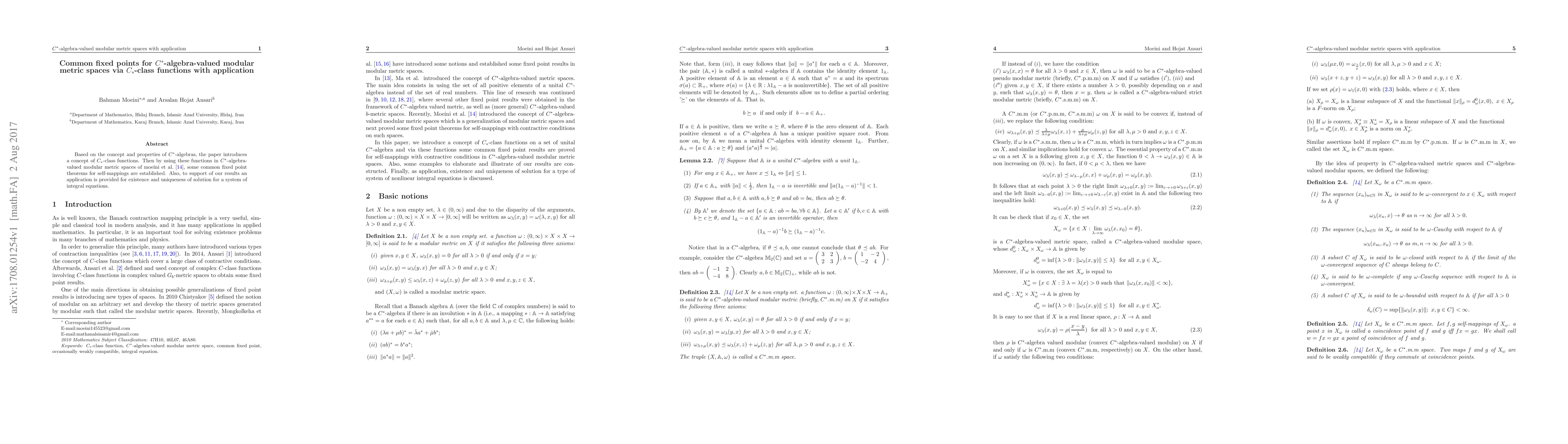 Based on the concept and properties of $C^{*}$-algebras, the paper introduces a concept of $C_{*}$-class functions. Then by using these functions in $C^{*}$-algebra- valued modular metric spaces of moeini et al. [14], some common fixed point theorems for self-mappings are established. Also, to support of our results an application is provided for existence and uniqueness of solution for a system of integral equations.