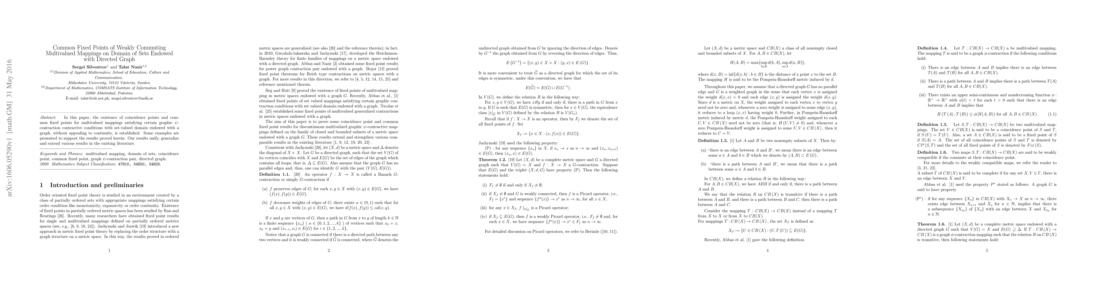 This paper establishes the existence of coincidence and common fixed points for multivalued mappings that satisfy specific graphic contraction conditions on a set endowed with a directed graph, without requiring continuity. The results unify, generalize, and extend previous findings in the literature.