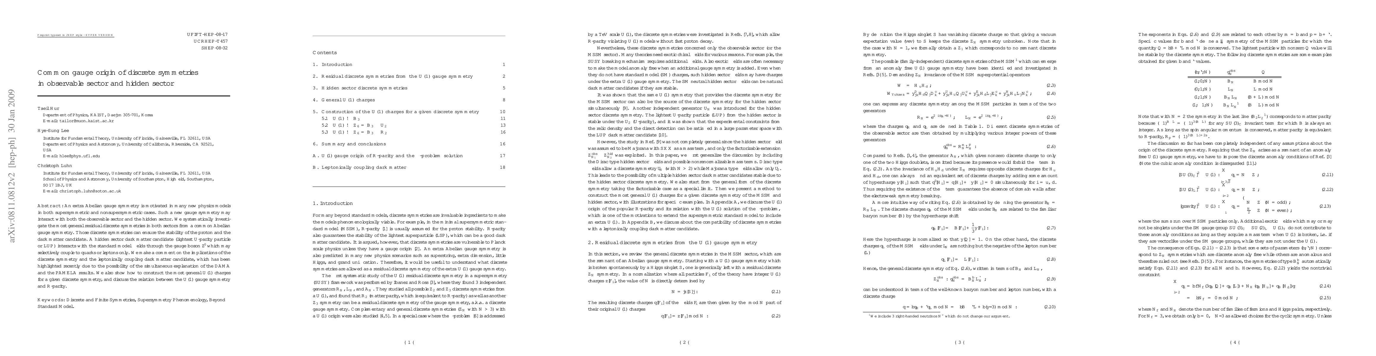 An extra Abelian gauge symmetry is motivated in many new physics models in both supersymmetric and nonsupersymmetric cases. Such a new gauge symmetry may interact with both the observable sector and the hidden sector. We systematically investigate the most general residual discrete symmetries in both sectors from a common Abelian gauge symmetry. Those discrete symmetries can ensure the stability of the proton and the dark matter candidate. A hidden sector dark matter candidate (lightest U-parity particle or LUP) interacts with the standard model fields through the gauge boson Z', which may selectively couple to quarks or leptons only. We make a comment on the implications of the discrete symmetry and the leptonically coupling dark matter candidate, which has been highlighted recently due to the possibility of the simultaneous explanation of the DAMA and the PAMELA results. We also show how to construct the most general U(1) charges for a given discrete symmetry, and discuss the relation between the U(1) gauge symmetry and R-parity.