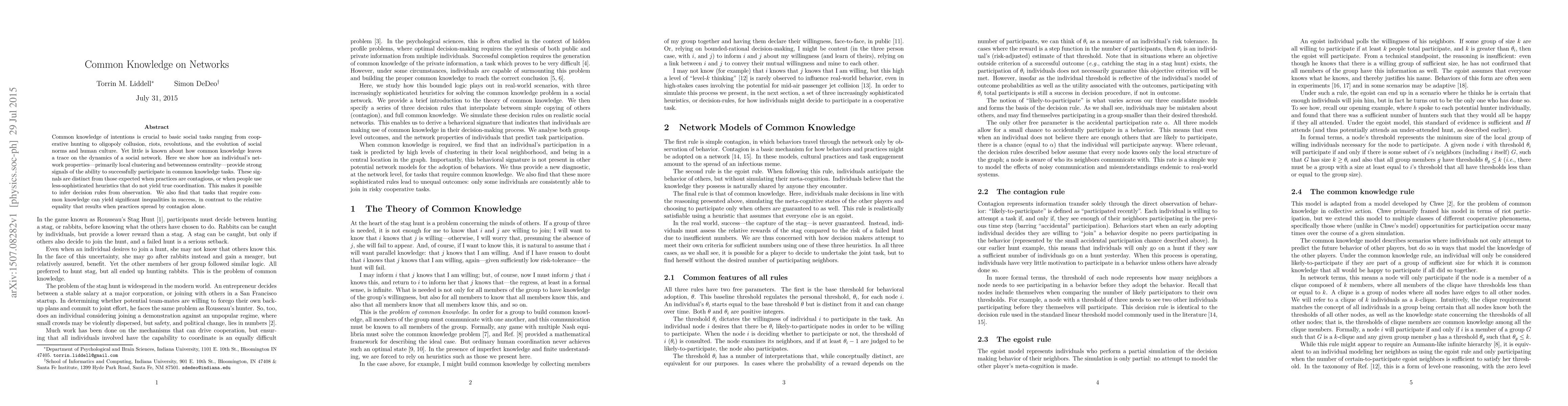 Common knowledge of intentions is crucial to basic social tasks ranging from cooperative hunting to oligopoly collusion, riots, revolutions, and the evolution of social norms and human culture. Yet little is known about how common knowledge leaves a trace on the dynamics of a social network. Here we show how an individual's network properties---primarily local clustering and betweenness centrality---provide strong signals of the ability to successfully participate in common knowledge tasks. These signals are distinct from those expected when practices are contagious, or when people use less-sophisticated heuristics that do not yield true coordination. This makes it possible to infer decision rules from observation. We also find that tasks that require common knowledge can yield significant inequalities in success, in contrast to the relative equality that results when practices spread by contagion alone.