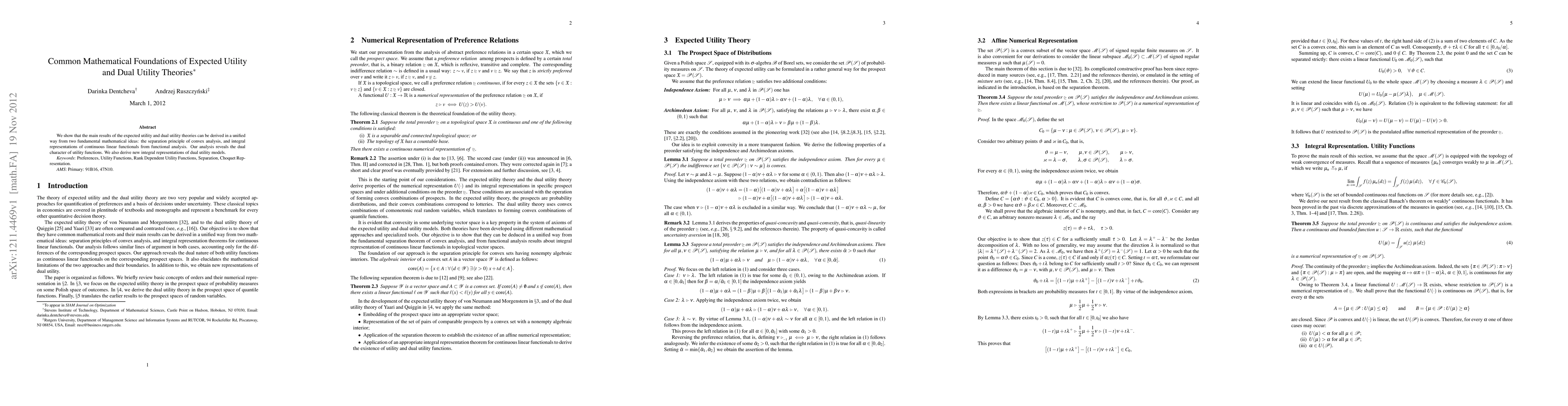 We show that the main results of the expected utility and dual utility theories can be derived in a unified way from two fundamental mathematical ideas: the separation principle of convex analysis, and integral representations of continuous linear functionals from functional analysis. Our analysis reveals the dual character of utility functions. We also derive new integral representations of dual utility models.