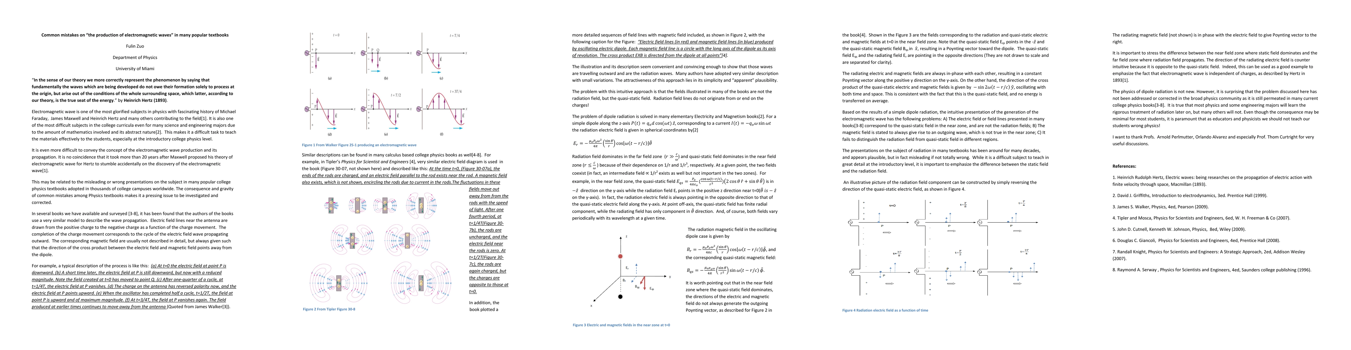 A study identifies a common mistake in physics textbooks regarding the generation and propagation of electromagnetic waves, where the electric field is incorrectly portrayed as static rather than radiating field.