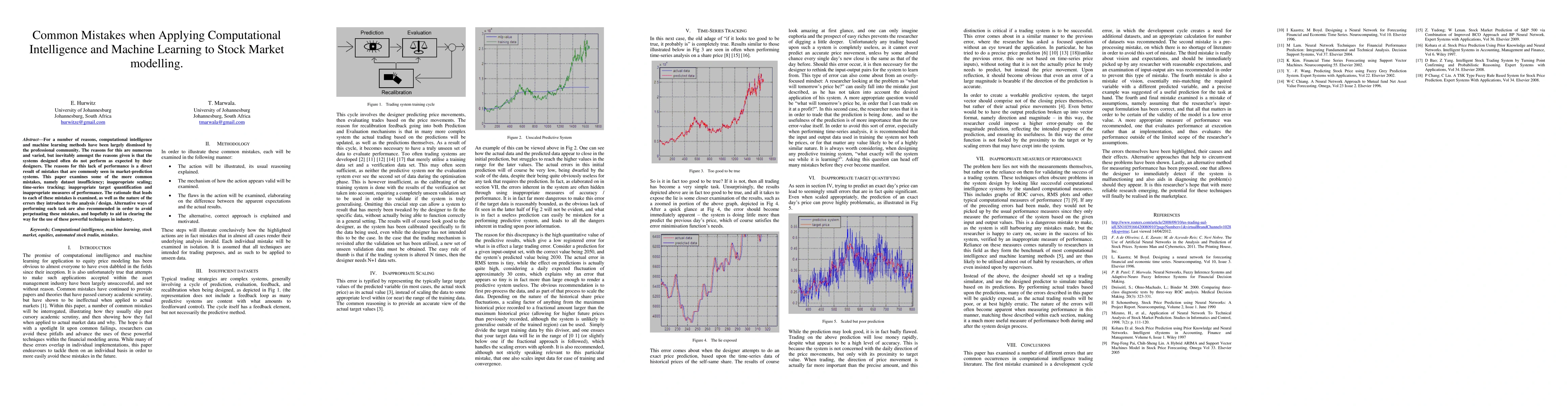 This paper identifies common errors in applying computational intelligence and machine learning to stock market modeling, including dataset insufficiency, inappropriate scaling, time-series tracking issues, incorrect target quantification, and flawed performance metrics. It provides insights into the rationale behind these mistakes and suggests better practices to improve model performance.
