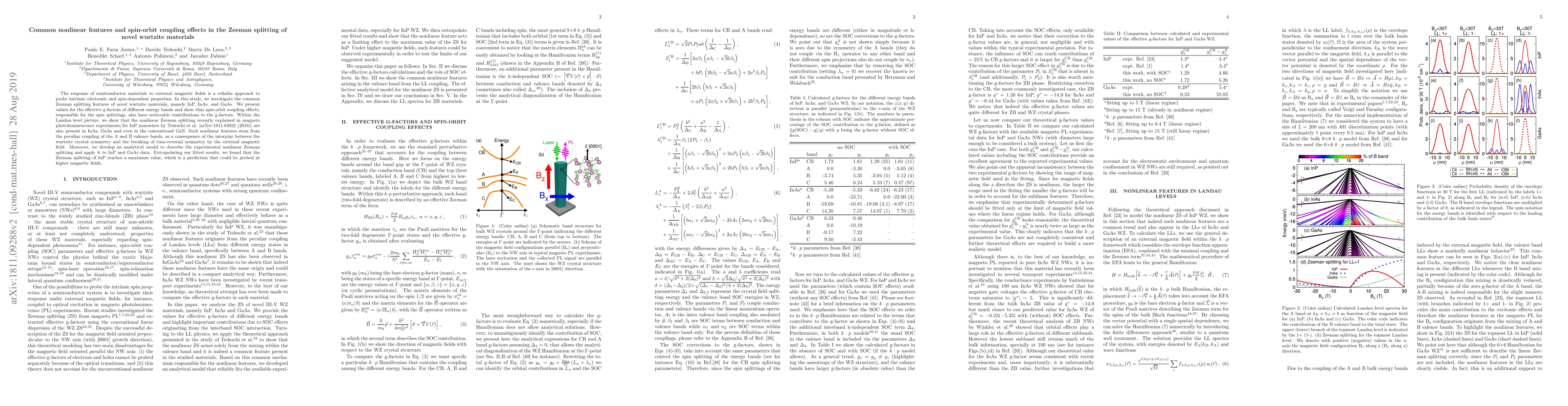 This study investigates the Zeeman splitting in novel wurtzite materials (InP, InAs, GaAs) and finds nonlinear features due to spin-orbit coupling and valence band interactions. An analytical model is developed to describe these effects, predicting maximum Zeeman splitting in InP at higher magnetic fields.