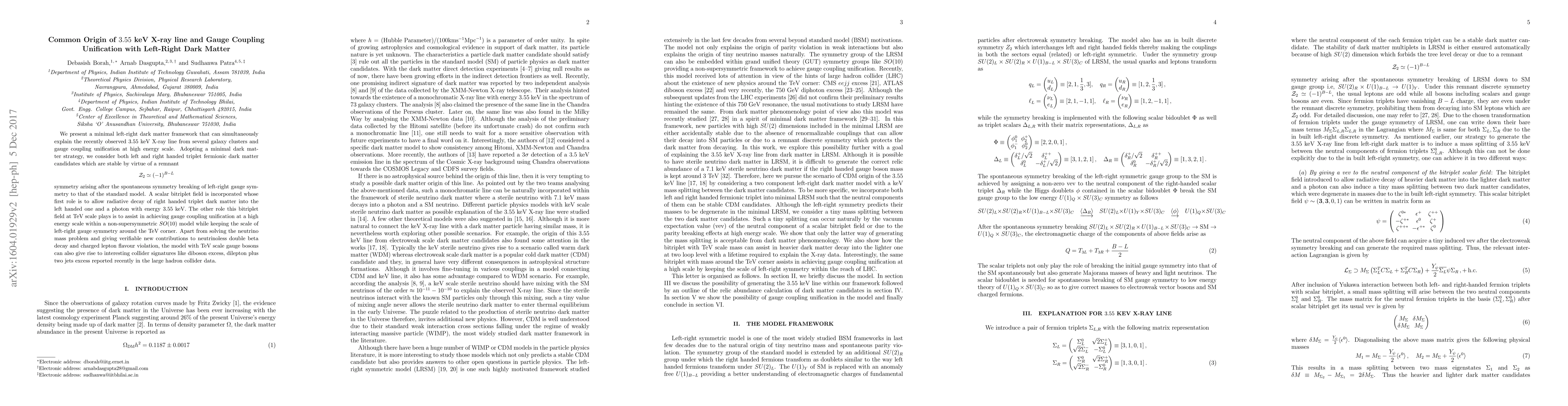 This paper proposes a left-right dark matter framework that explains both the 3.55 keV X-ray line and gauge coupling unification, utilizing stable left-right triplet fermionic dark matter candidates. A scalar bitriplet field facilitates the decay and gauge coupling unification, with potential collider signatures.