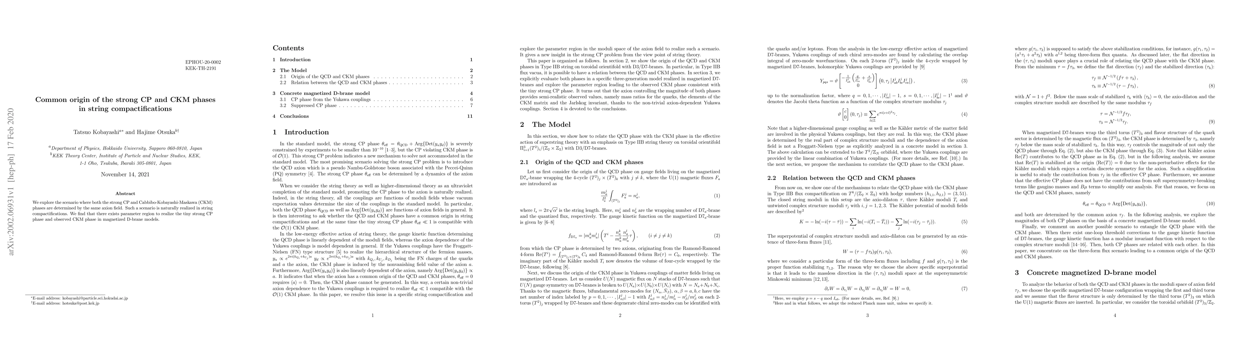 Research finds that a single axion field could explain both the strong CP phase and the observed CKM phase in string compactifications, offering a potential solution to long-standing puzzles in physics.