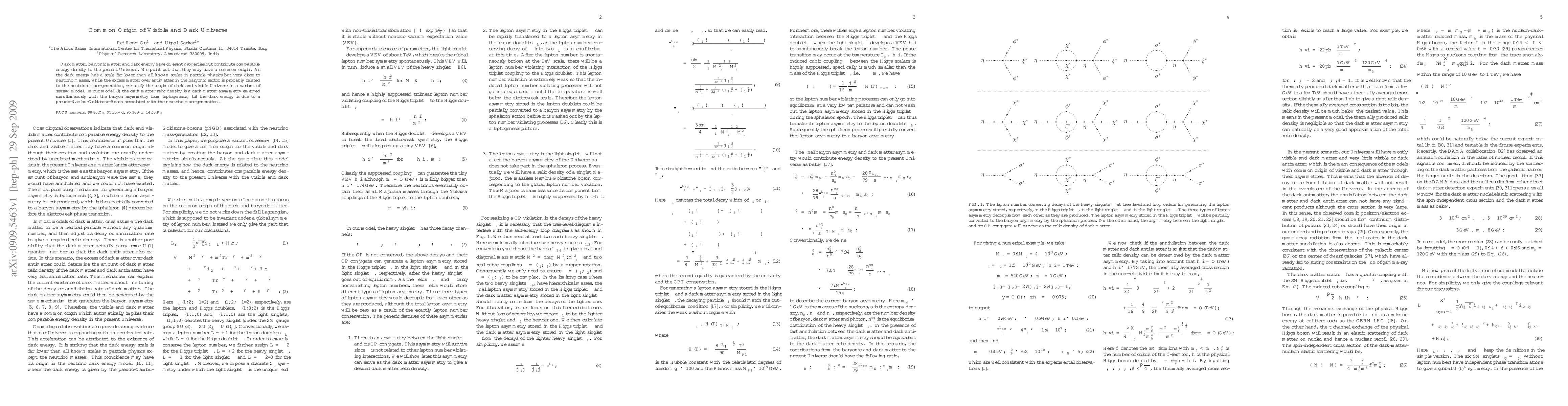 Dark matter, baryonic matter and dark energy have different properties but contribute comparable energy density to the present Universe. We point out that they may have a common origin. As the dark energy has a scale far lower than all known scales in particle physics but very close to neutrino masses, while the excess matter over antimatter in the baryonic sector is probably related to the neutrino mass-generation, we unify the origin of dark and visible Universe in a variant of seesaw model. In our model (i) the dark matter relic density is a dark matter asymmetry emerged simultaneously with the baryon asymmetry from leptogenesis; (ii) the dark energy is due to a pseudo-Nambu-Goldstone-Boson associated with the neutrino mass-generation.