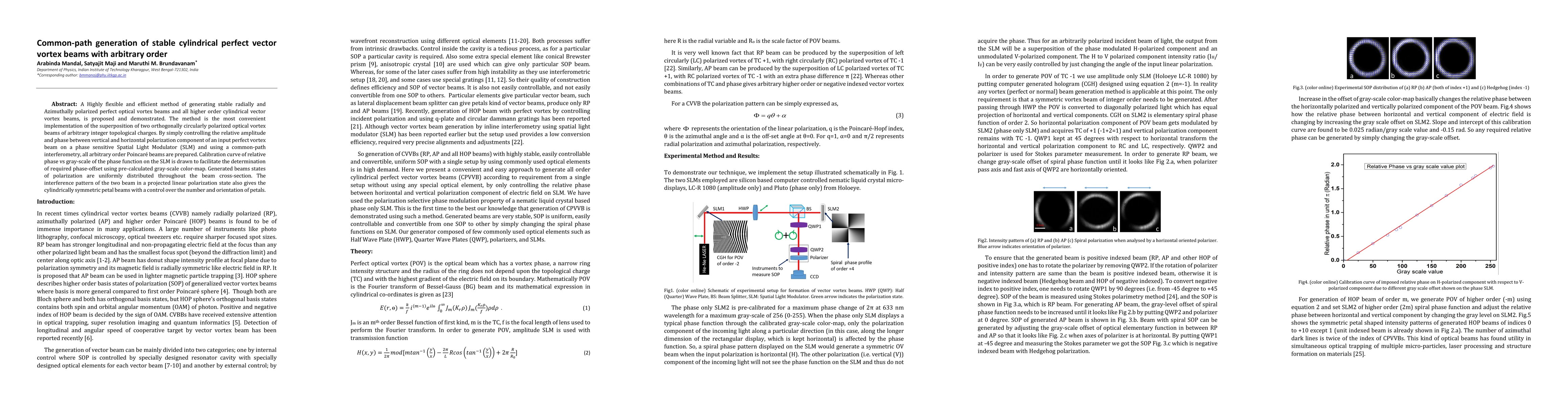 This paper presents a highly flexible method for generating stable cylindrical perfect vector vortex beams of arbitrary order using a common-path interferometry approach. The method involves controlling the relative amplitude and phase of orthogonally polarized components on a Spatial Light Modulator to create desired polarization states.