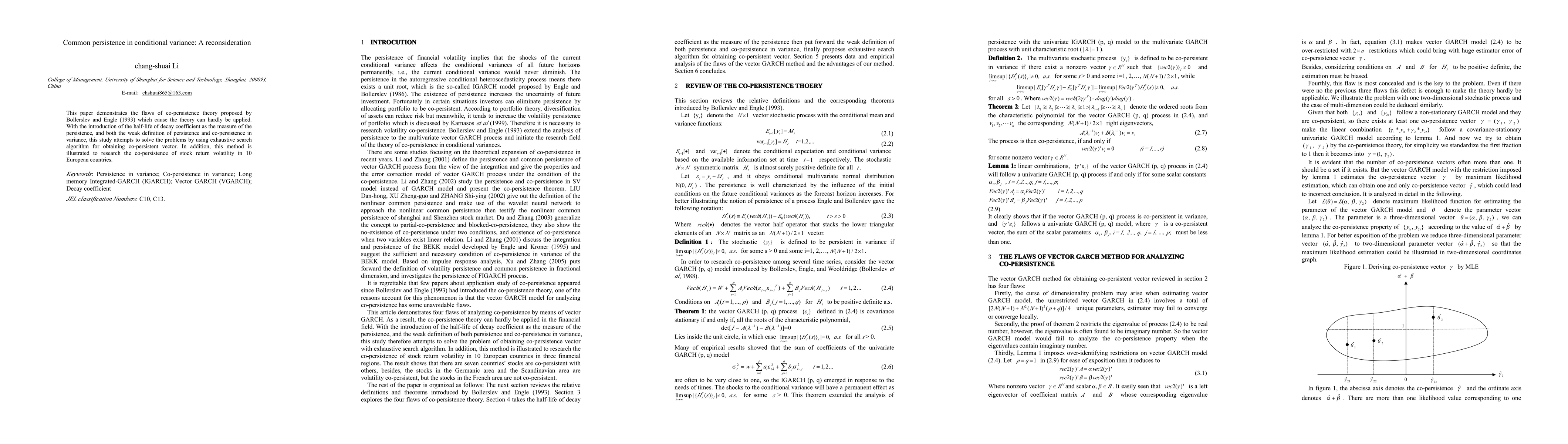 This paper demonstrates the flaws of co-persistence theory proposed by Bollerslev and Engle (1993) which cause the theory can hardly be applied. With the introduction of the half-life of decay coefficient as the measure of the persistence, and both the weak definition of persistence and co-persistence in variance, this study attempts to solve the problems by using exhaustive search algorithm for obtaining co-persistent vector. In addition, this method is illustrated to research the co-persistence of stock return volatility in 10 European countries.