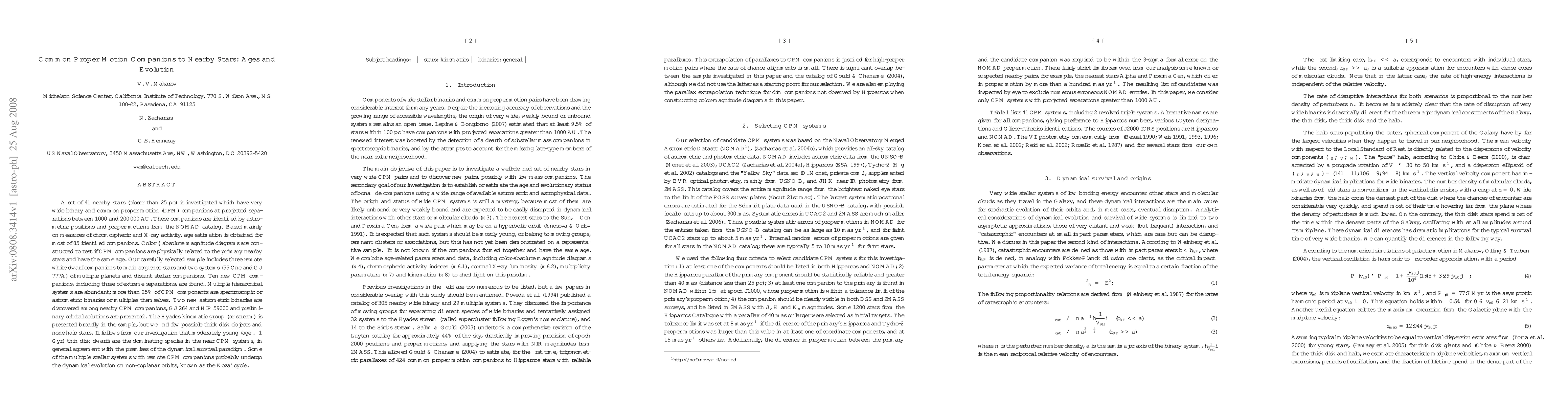 A set of 41 nearby stars (closer than 25 pc) is investigated which have very wide binary and common proper motion (CPM) companions at projected separations between 1000 and $200 000$ AU. These companions are identified by astrometric positions and proper motions from the NOMAD catalog. Based mainly on measures of chromospheric and X-ray activity, age estimation is obtained for most of 85 identified companions. Color -- absolute magnitude diagrams are constructed to test if CPM companions are physically related to the primary nearby stars and have the same age. Our carefully selected sample includes three remote white dwarf companions to main sequence stars and two systems (55 Cnc and GJ 777A) of multiple planets and distant stellar companions. Ten new CPM companions, including three of extreme separations, are found. Multiple hierarchical systems are abundant; more than 25% of CPM components are spectroscopic or astrometric binaries or multiples themselves. Two new astrometric binaries are discovered among nearby CPM companions, GJ 264 and HIP 59000 and preliminary orbital solutions are presented. The Hyades kinematic group (or stream) is presented broadly in the sample, but we find few possible thick disk objects and none halo stars. It follows from our investigation that moderately young (age $\lesssim 1$ Gyr) thin disk dwarfs are the dominating species in the near CPM systems, in general agreement with the premises of the dynamical survival paradigm. Some of the multiple stellar systems with remote CPM companions probably undergo the dynamical evolution on non-coplanar orbits, known as the Kozai cycle.