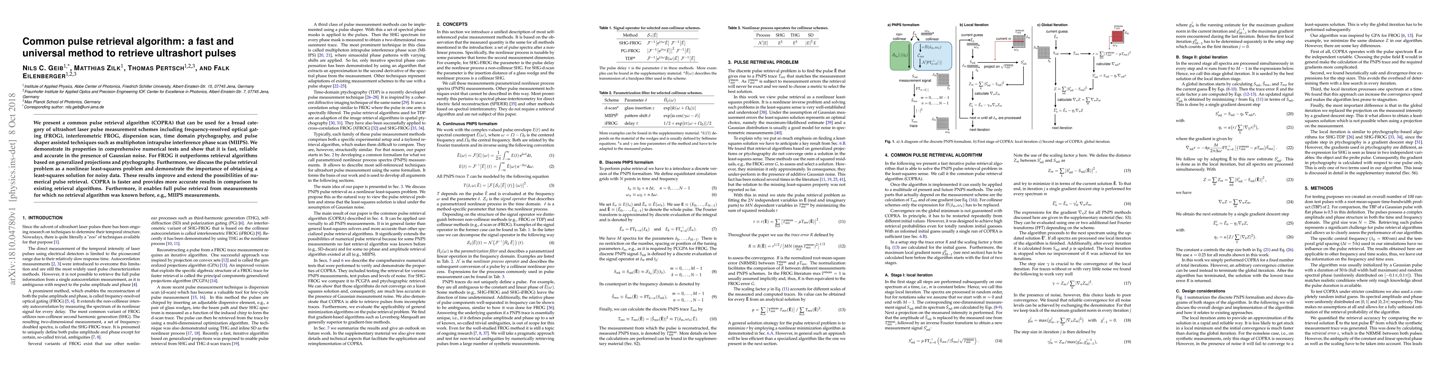 The paper introduces COPRA, a fast and universal algorithm for retrieving ultrashort laser pulses across various measurement techniques, demonstrating its superior performance over existing methods, especially in noisy conditions. COPRA effectively solves the pulse retrieval problem as a nonlinear least-squares optimization, significantly enhancing retrieval accuracy and applicability.