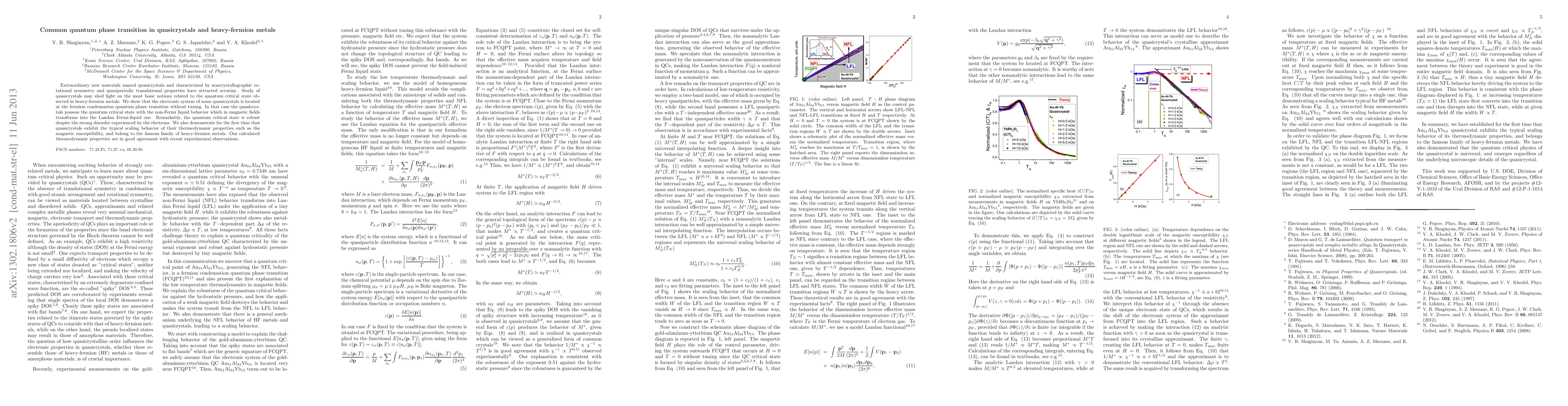 This paper investigates the quantum phase transition in quasicrystals and finds they exhibit a fermion condensation quantum phase transition akin to heavy-fermion metals, displaying robust non-Fermi liquid behavior that transforms into Landau Fermi-liquid under magnetic fields. The study reveals quasicrystals' thermodynamic properties scale similarly to heavy-fermion metals, corroborated by experimental data.