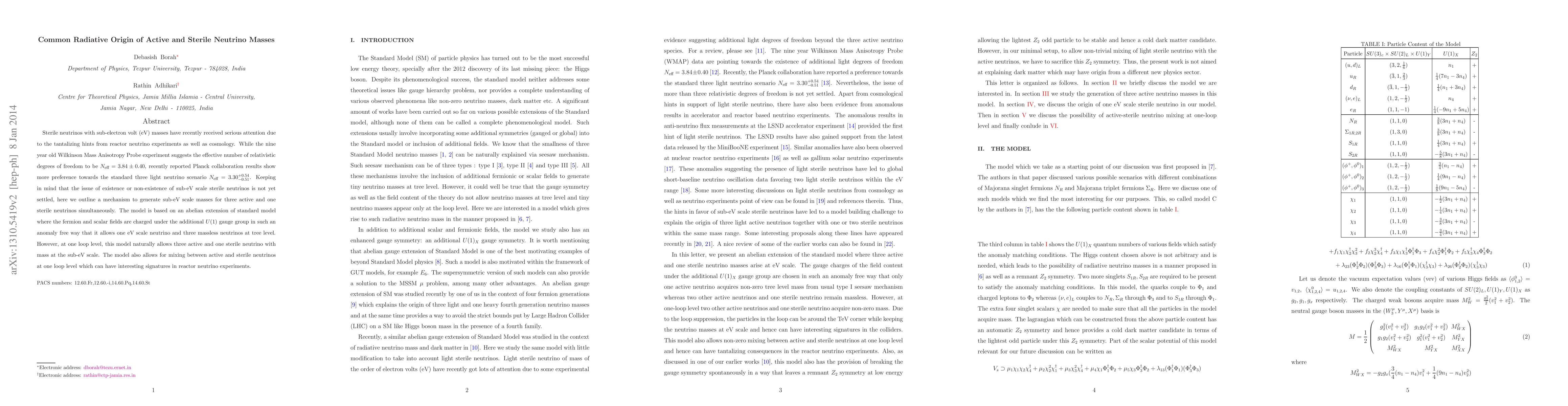 This paper proposes a mechanism within an extended standard model to generate sub-eV masses for both active and sterile neutrinos through a $U(1)$ gauge group, allowing for mixing at the loop level, which could explain experimental hints of sterile neutrinos. The model reconciles cosmological data with potential signals in reactor neutrino experiments.