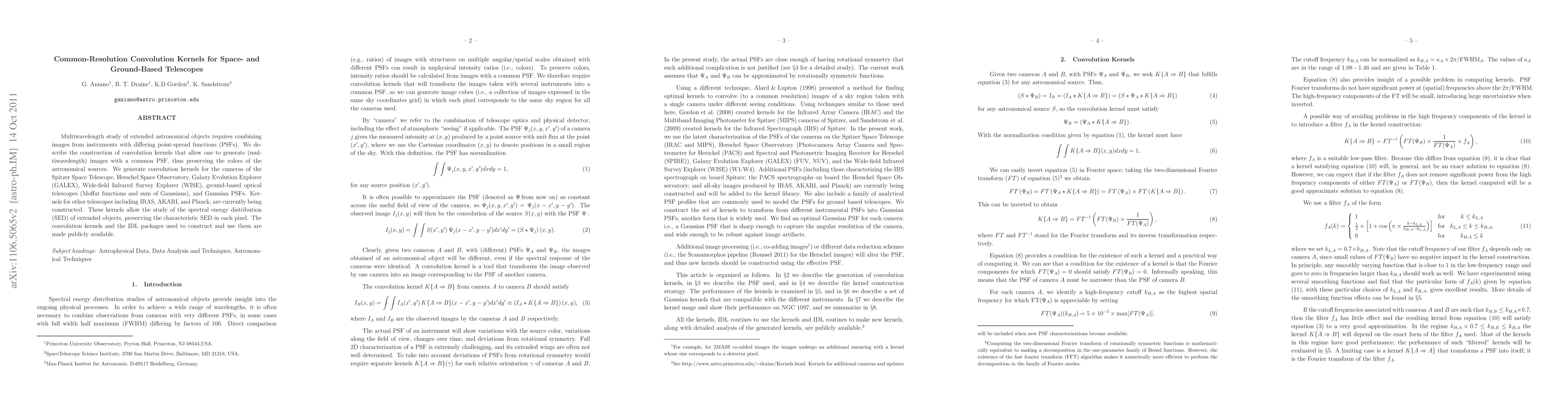 Researchers developed common-resolution convolution kernels to combine images from different telescopes with varying point spread functions, preserving colors of astronomical sources. These kernels enable multi-wavelength studies of extended objects and are now publicly available.
