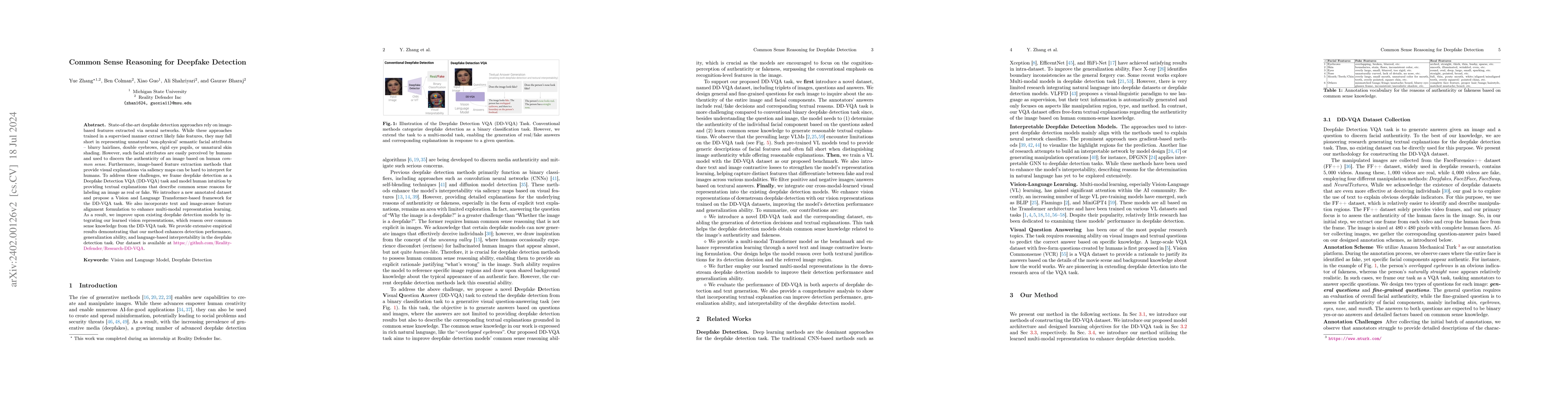 State-of-the-art approaches rely on image-based features extracted via neural networks for the deepfake detection binary classification. While these approaches trained in the supervised sense extract likely fake features, they may fall short in representing unnatural `non-physical' semantic facial attributes -- blurry hairlines, double eyebrows, rigid eye pupils, or unnatural skin shading. However, such facial attributes are generally easily perceived by humans via common sense reasoning. Furthermore, image-based feature extraction methods that provide visual explanation via saliency maps can be hard to be interpreted by humans. To address these challenges, we propose the use of common sense reasoning to model deepfake detection, and extend it to the Deepfake Detection VQA (DD-VQA) task with the aim to model human intuition in explaining the reason behind labeling an image as either real or fake. To this end, we introduce a new dataset that provides answers to the questions related to the authenticity of an image, along with its corresponding explanations. We also propose a Vision and Language Transformer-based framework for the DD-VQA task, incorporating text and image aware feature alignment formulations. Finally, we evaluate our method on both the performance of deepfake detection and the quality of the generated explanations. We hope that this task inspires researchers to explore new avenues for enhancing language-based interpretability and cross-modality applications in the realm of deepfake detection.