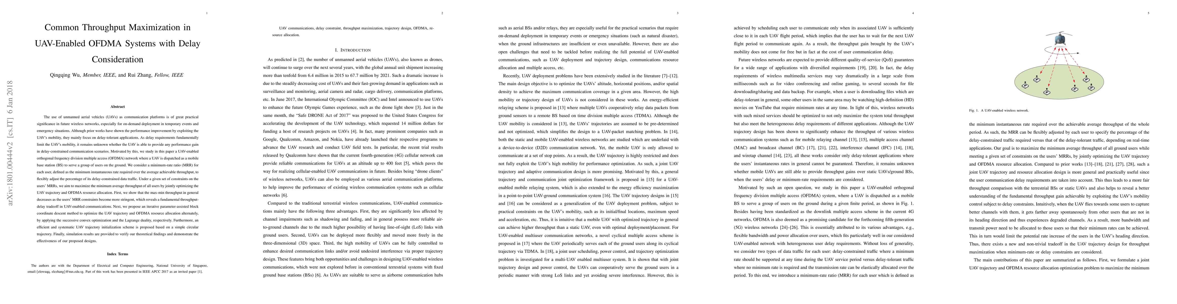 This paper investigates maximizing common throughput in UAV-enabled OFDMA networks under delay constraints, proposing an iterative optimization method to jointly optimize the UAV's trajectory and resource allocation. It reveals a fundamental throughput-delay tradeoff and demonstrates the effectiveness of the proposed approach through simulations.
