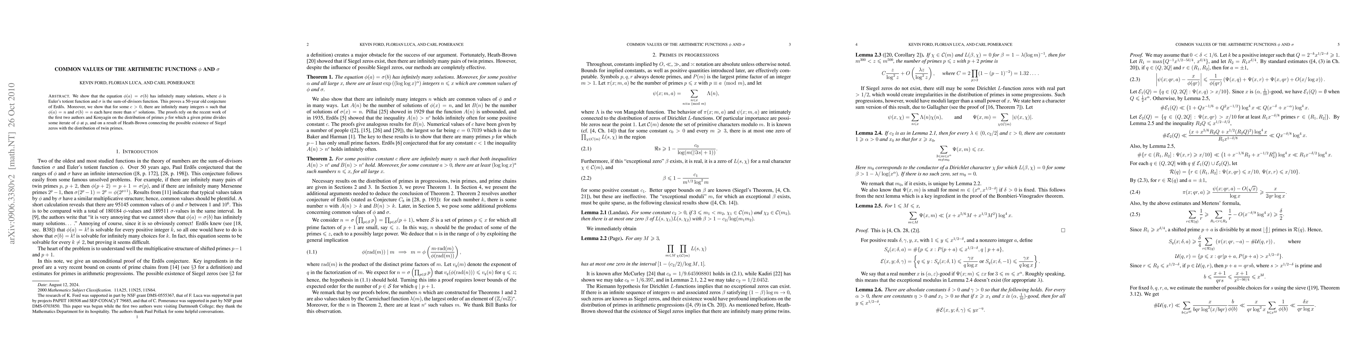 The paper proves a 50-year-old conjecture of Erdos that phi(a) = sigma(b) has infinitely many solutions, and shows there are infinitely many integers n with more than n^c solutions for some c>0.