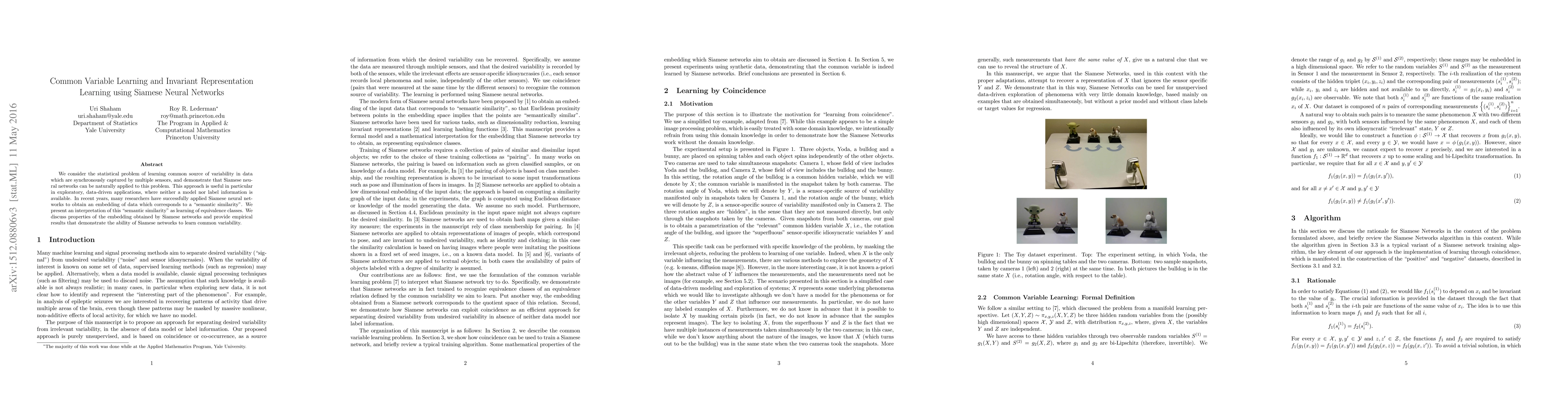 We consider the statistical problem of learning common source of variability in data which are synchronously captured by multiple sensors, and demonstrate that Siamese neural networks can be naturally applied to this problem. This approach is useful in particular in exploratory, data-driven applications, where neither a model nor label information is available. In recent years, many researchers have successfully applied Siamese neural networks to obtain an embedding of data which corresponds to a "semantic similarity". We present an interpretation of this "semantic similarity" as learning of equivalence classes. We discuss properties of the embedding obtained by Siamese networks and provide empirical results that demonstrate the ability of Siamese networks to learn common variability.