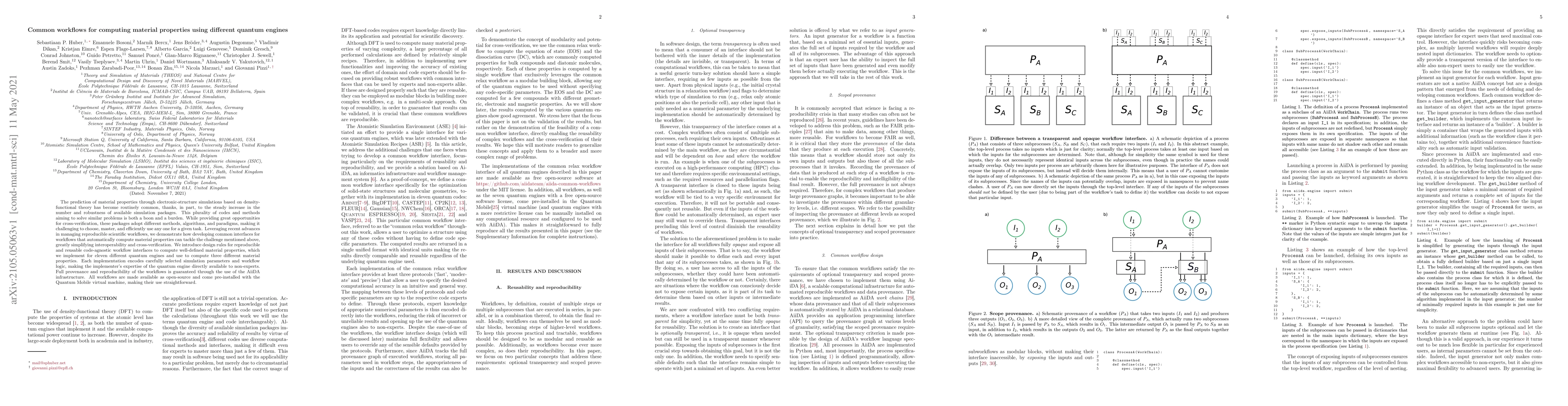 The prediction of material properties through electronic-structure simulations based on density-functional theory has become routinely common, thanks, in part, to the steady increase in the number and robustness of available simulation packages. This plurality of codes and methods aiming to solve similar problems is both a boon and a burden. While providing great opportunities for cross-verification, these packages adopt different methods, algorithms, and paradigms, making it challenging to choose, master, and efficiently use any one for a given task. Leveraging recent advances in managing reproducible scientific workflows, we demonstrate how developing common interfaces for workflows that automatically compute material properties can tackle the challenge mentioned above, greatly simplifying interoperability and cross-verification. We introduce design rules for reproducible and reusable code-agnostic workflow interfaces to compute well-defined material properties, which we implement for eleven different quantum engines and use to compute three different material properties. Each implementation encodes carefully selected simulation parameters and workflow logic, making the implementer's expertise of the quantum engine directly available to non-experts. Full provenance and reproducibility of the workflows is guaranteed through the use of the AiiDA infrastructure. All workflows are made available as open-source and come pre-installed with the Quantum Mobile virtual machine, making their use straightforward.