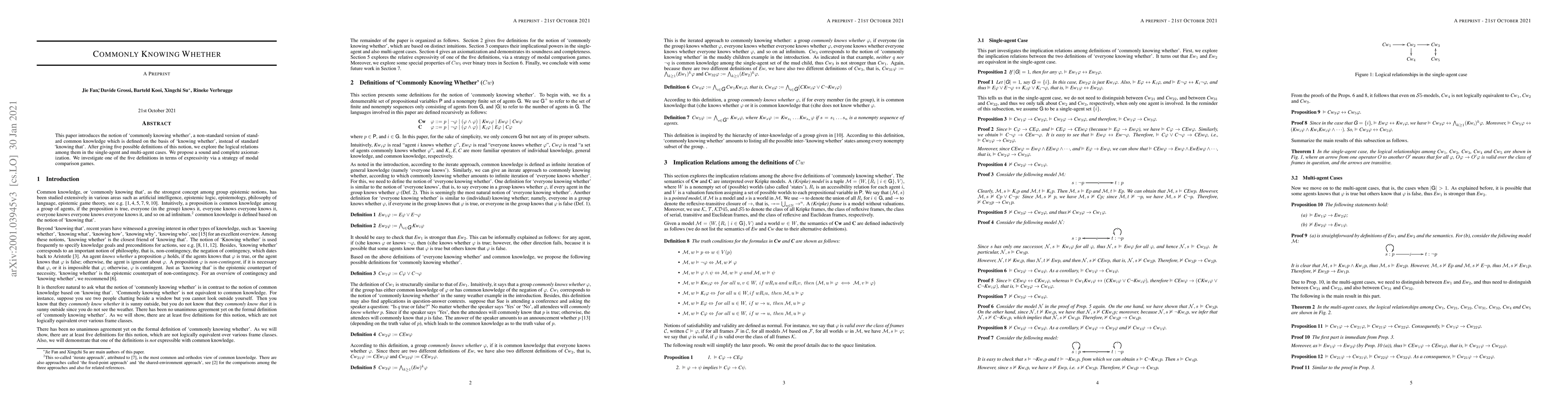 This paper introduces "commonly knowing whether," a novel concept differing from standard common knowledge by focusing on "knowing whether" rather than "knowing that." It explores logical relations among five definitions and proposes a sound and complete axiomatization, analyzing expressivity through modal comparison games.