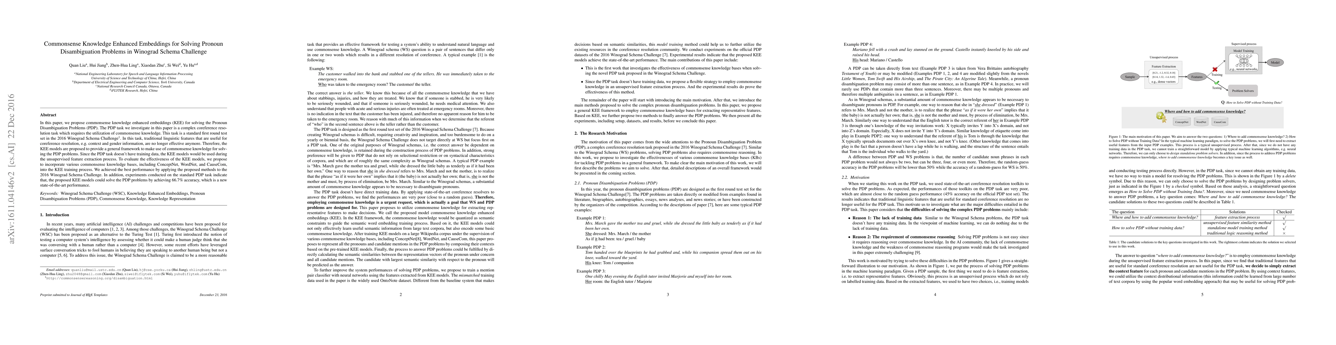 Researchers propose a new approach to solving pronoun disambiguation problems by leveraging commonsense knowledge, achieving a state-of-the-art 66.7% accuracy in the 2016 Winograd Schema Challenge.