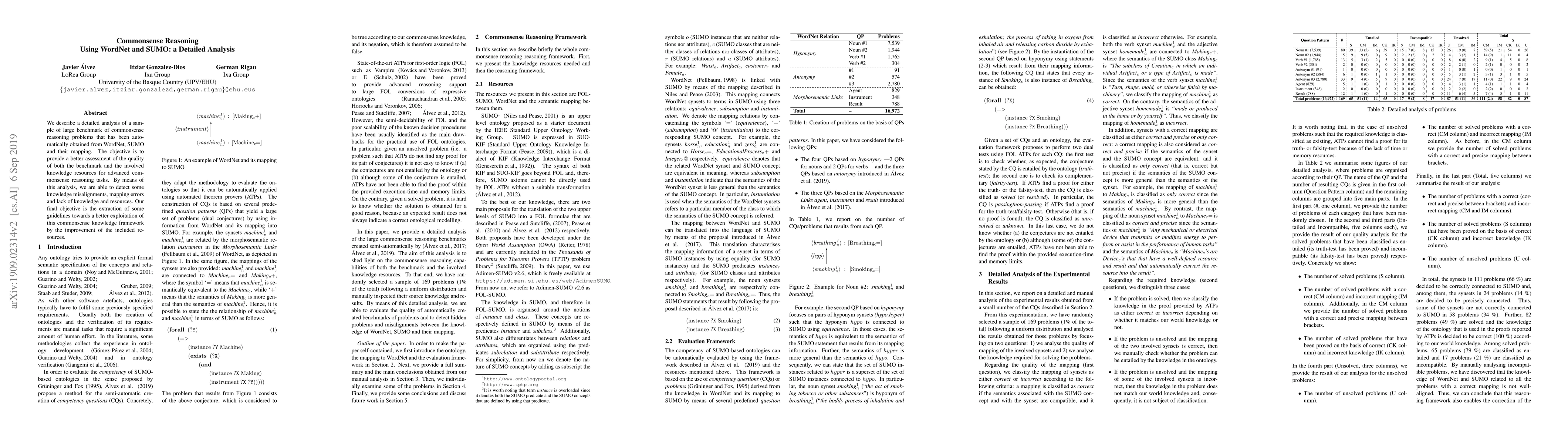 This paper analyzes a large benchmark of commonsense reasoning problems derived from WordNet and SUMO, aiming to assess the quality of the knowledge resources and identify issues like misalignments and mapping errors. The study aims to provide guidelines for enhancing the commonsense knowledge framework.