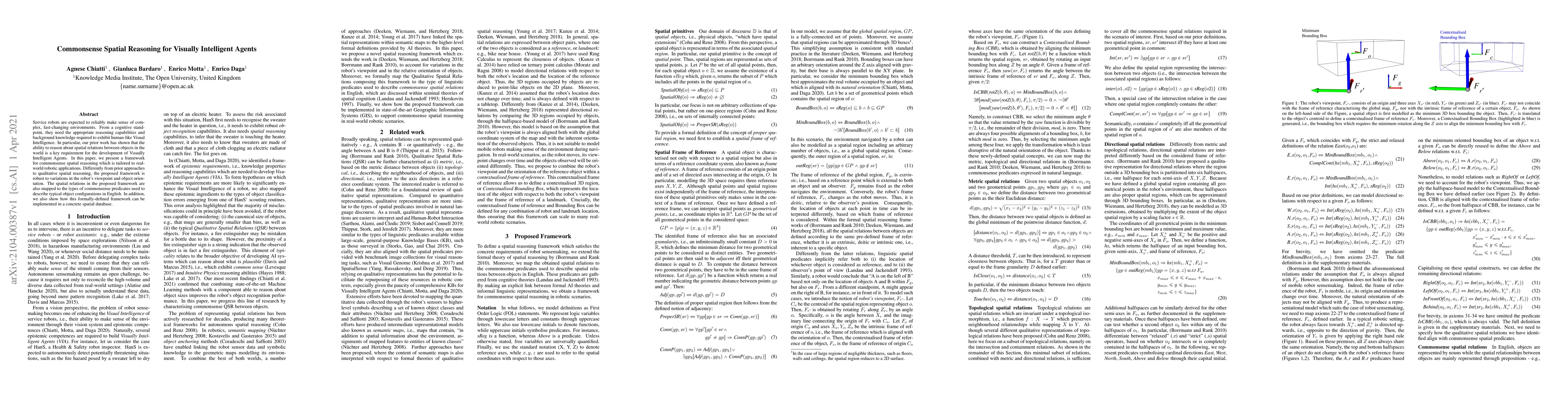 Service robots are expected to reliably make sense of complex, fast-changing environments. From a cognitive standpoint, they need the appropriate reasoning capabilities and background knowledge required to exhibit human-like Visual Intelligence. In particular, our prior work has shown that the ability to reason about spatial relations between objects in the world is a key requirement for the development of Visually Intelligent Agents. In this paper, we present a framework for commonsense spatial reasoning which is tailored to real-world robotic applications. Differently from prior approaches to qualitative spatial reasoning, the proposed framework is robust to variations in the robot's viewpoint and object orientation. The spatial relations in the proposed framework are also mapped to the types of commonsense predicates used to describe typical object configurations in English. In addition, we also show how this formally-defined framework can be implemented in a concrete spatial database.